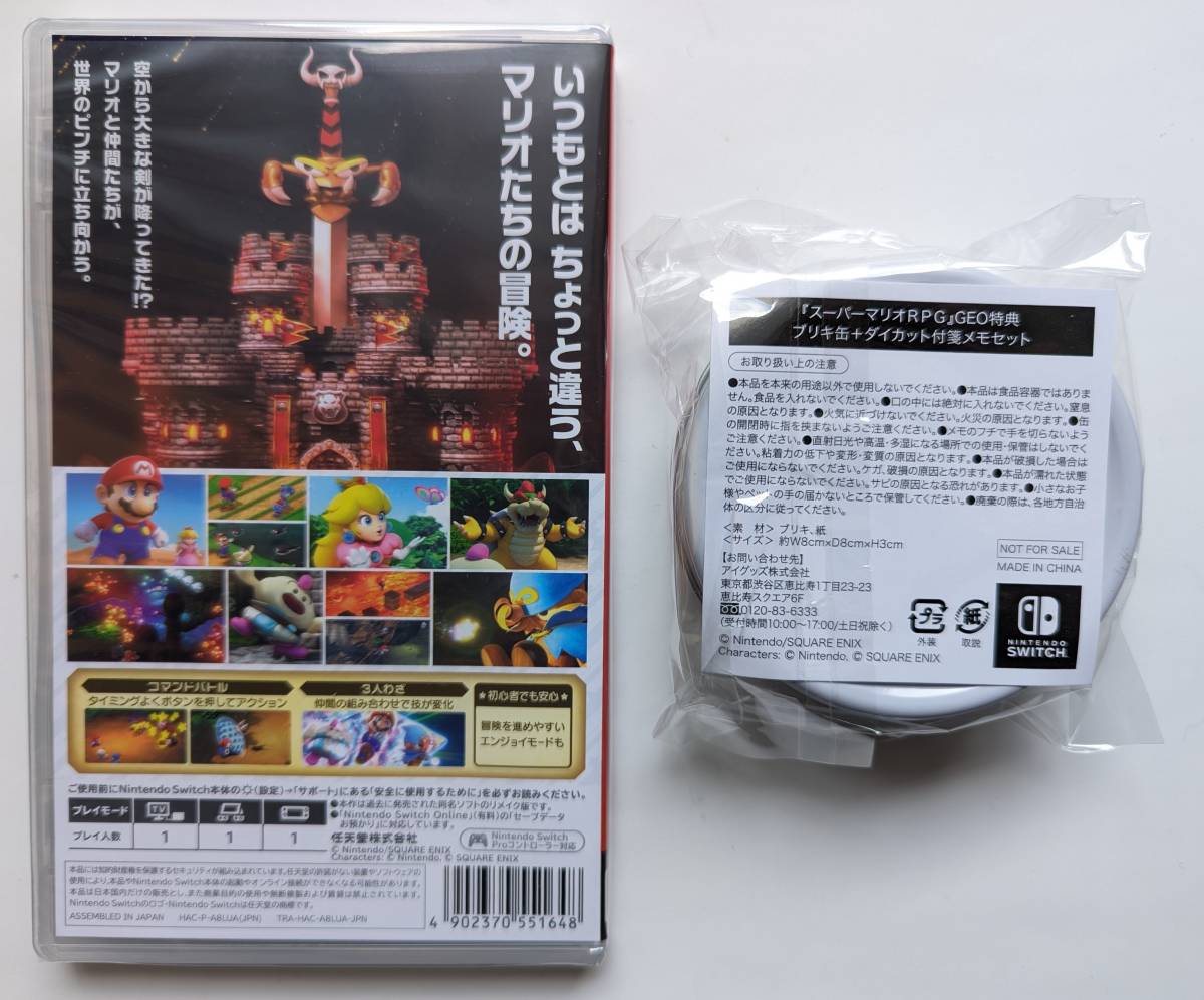 「Switch スーパーマリオRPG ゲオ特典 ブリキ缶+ダイカット付箋メモセット 付き」新品未開封品になります。(※ばら売りはできません。)状態は良好だと思いますが神経質な方は入札をご遠慮ください。ご理解頂ける方のみご入札お願いします。発送方法は、レターパックライト(送料430円 ※厚さ3cm以内の梱包)、レターパックプラス(送料600円 ※厚さ3cm以上の梱包)、の中からお選びください。(※代金引換は対応しておりません。)素早くお取引を行える方を希望致します。オークション終了後、5日以内に入金できる方のみご入札お願いします。落札後のキャンセルはお断りします。評価の悪い方や、連絡が遅い方は入札をご遠慮ください。落札後はノークレーム、ノーリターンでお願いします。