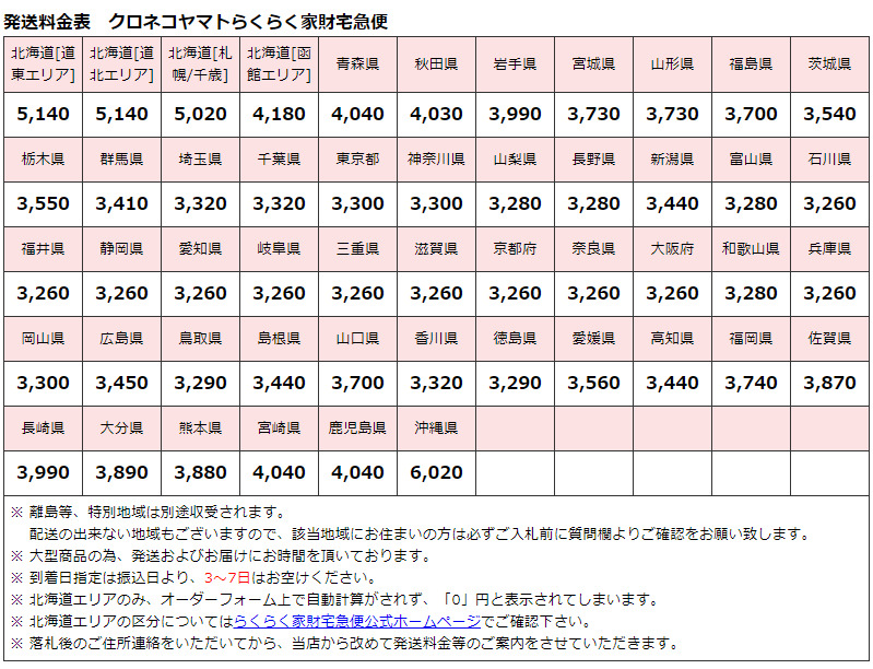 I.家具等超大件或超过30KG的物品,需要增收超重处理费 3000日元/件。