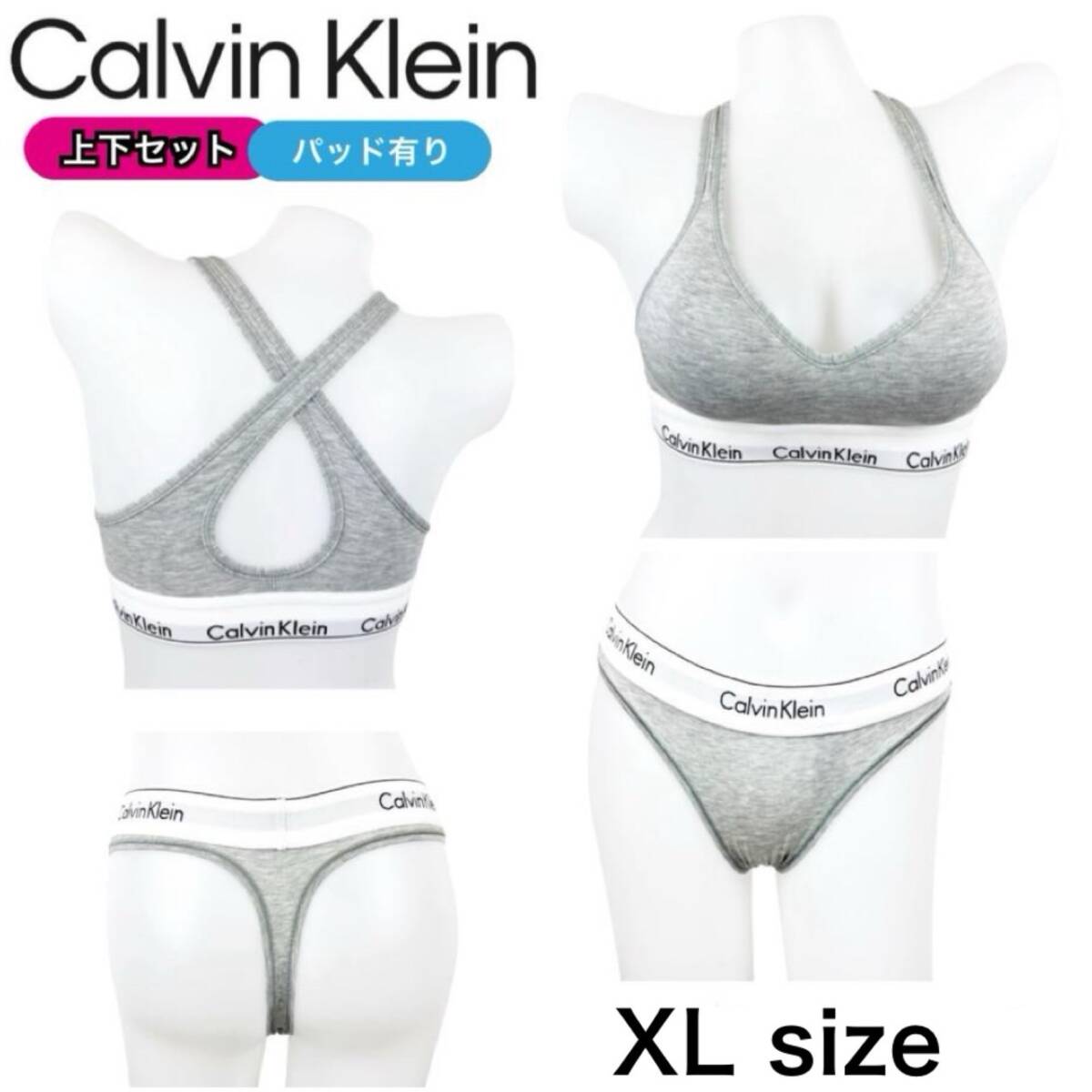 カルバンクライン calvin klein ブラ Tバック 下着 上下 セット 2点セット クロス グレー XLサイズ アンダーウェア パッドあり 新品