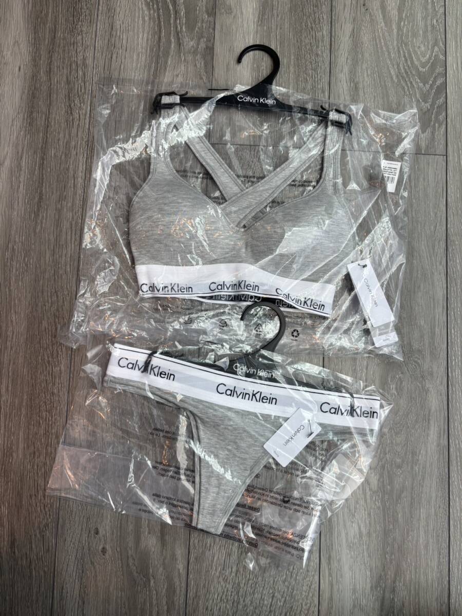 カルバンクライン calvin klein ブラ Tバック 下着 上下 セット 2点セット クロス グレー XLサイズ アンダーウェア パッドあり 新品 未使用品 正規品