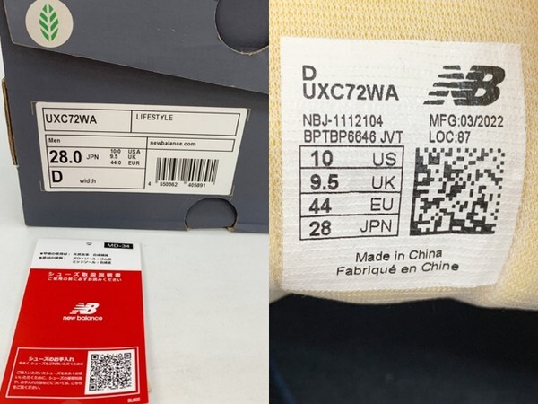 ランク:C 着用に伴う毛羽立ち感、紐穴付近の角スレ、ミッドソール踵付近と履き口に汚れが見受けられます。 付属品:箱 ※写真にないものは付属しておりません カラー:ベージュ|オレンジ ブランド名:New Balance メーカー型番:UXC72WA 靴のサイズ(JP):28㎝ 原産国/製造国:中国 カット:ローカット ブランド名(カナ):ニューバランス 代表カラー:ベージュ 個数:1 靴のサイズ(EUR):44 靴のサイズ(UK):9.5 靴のサイズ(US:Men):10 |