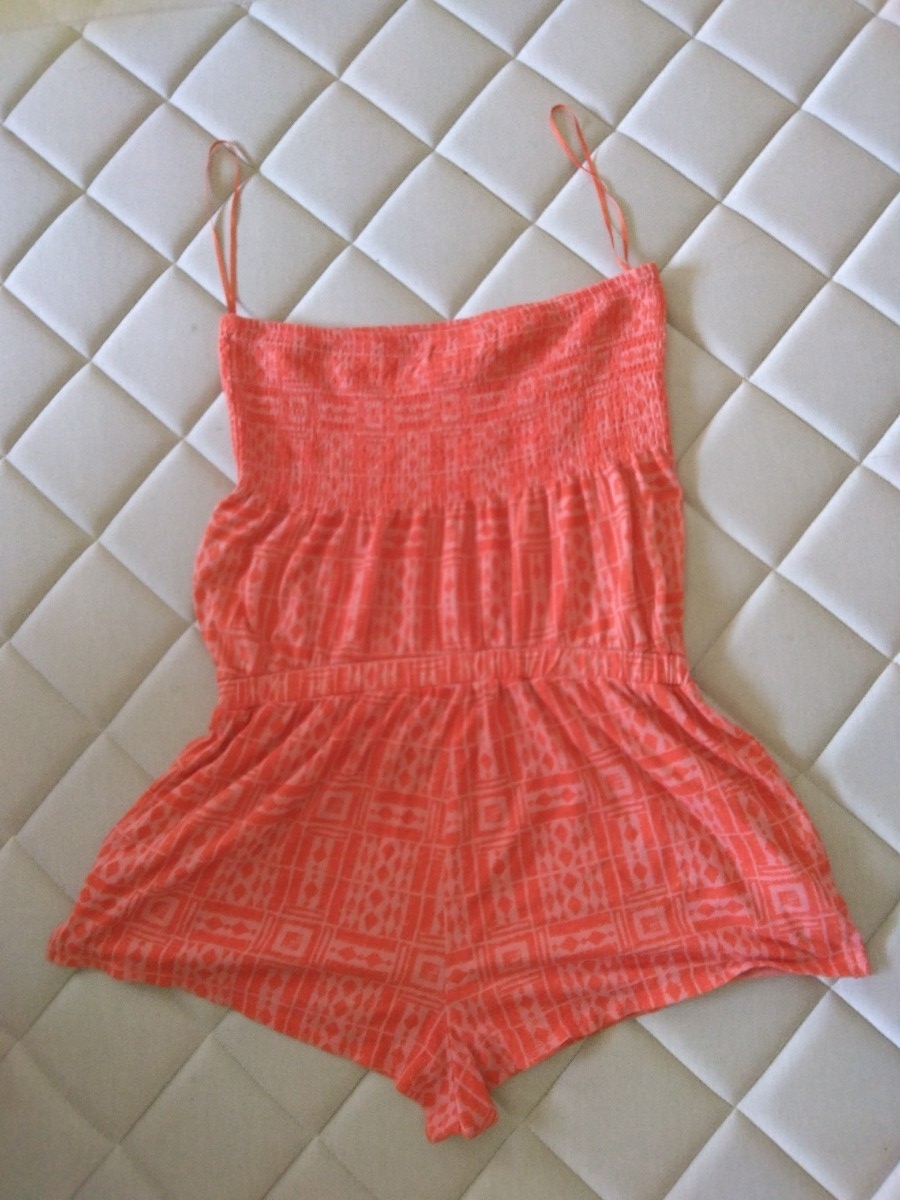 ROUTE66 ワンピース綿オレンジ総柄チューブトップ夏物レディース婦人服オールインワンつなぎショートパンツ短パンルート66ベトナムコットン