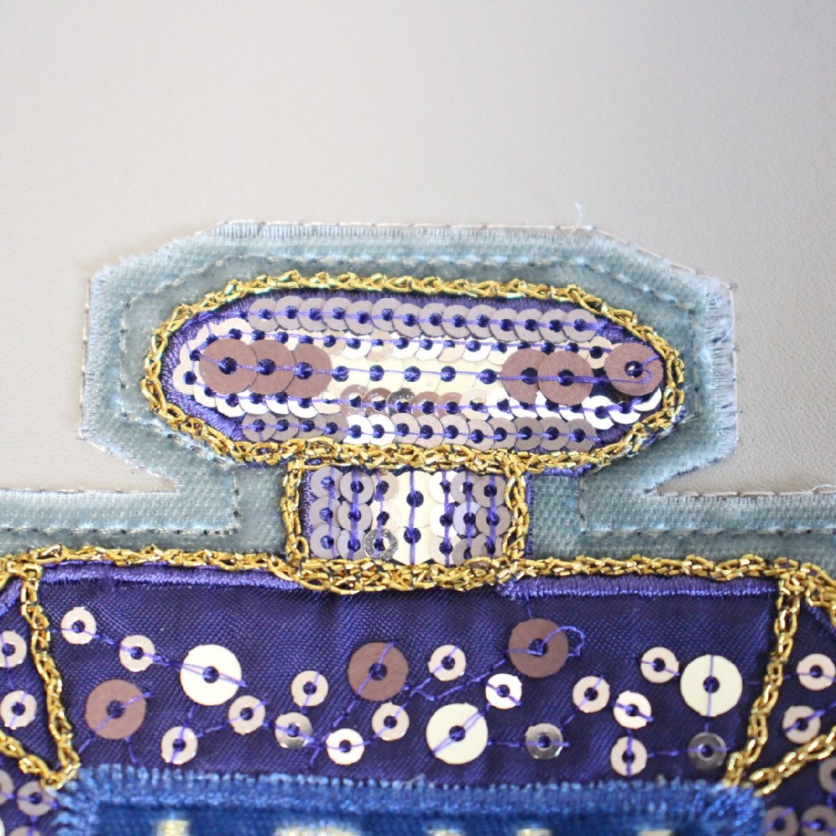 香水刺繍の上部のスパンコール糸に緩みが見られます。