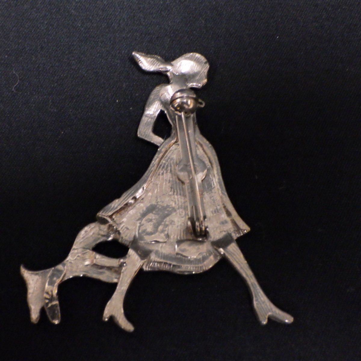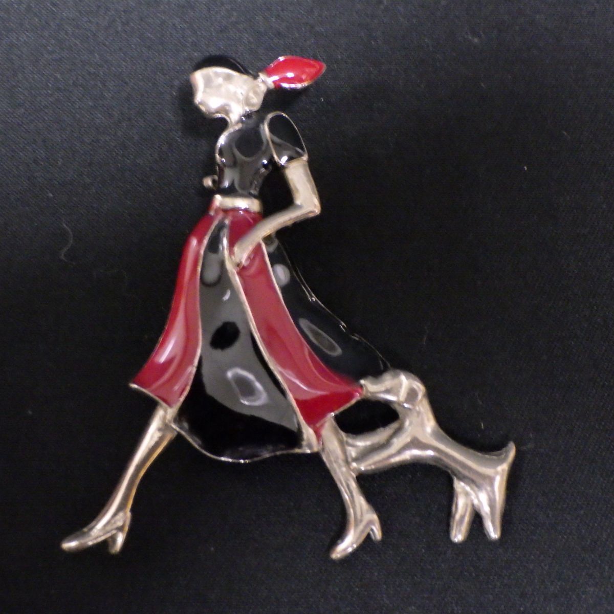 ヴィンテージ 女性と犬 ピンバッジ ブローチ