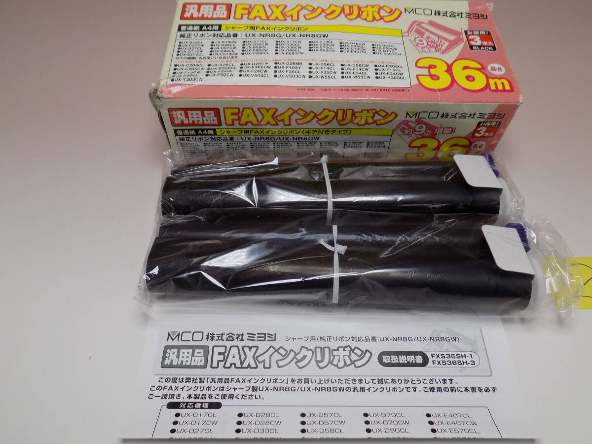 FAX用インクリボン(シャープ製 UX-NR8G・UX-NR9G対応) FXS36SH-3(36m×3本入り)