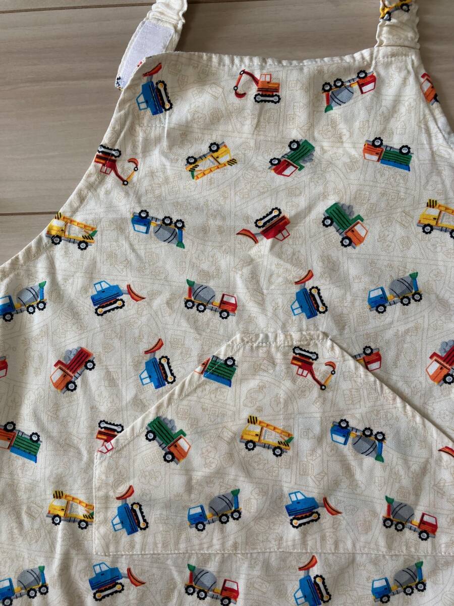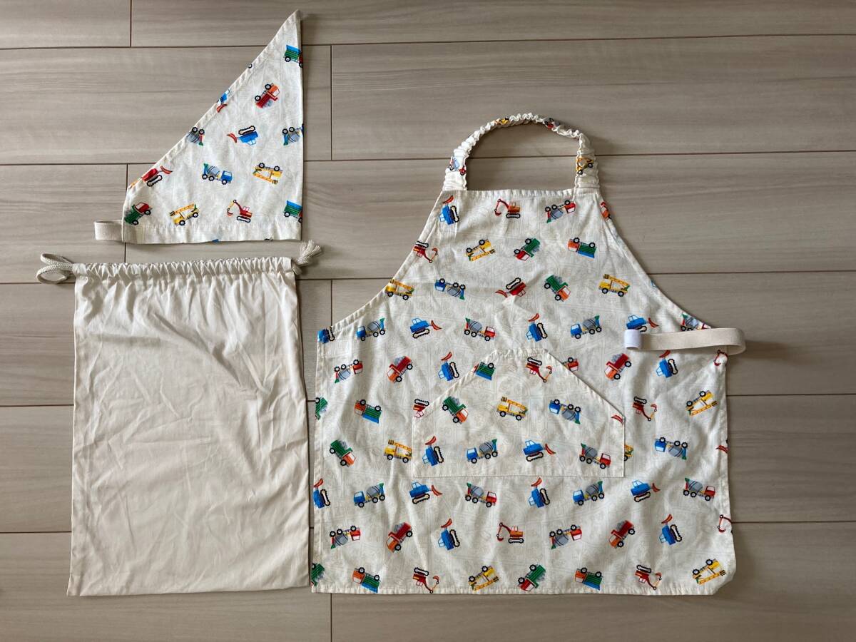 キッズ エプロン 3点セット 三角巾 巾着袋 子供用 マジックテープ Sサイズ 100 110 120 綿100% はたらくくるま のりもの