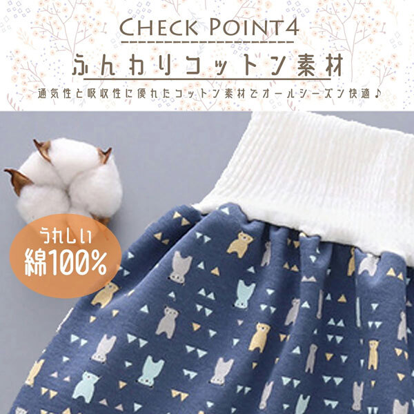 | 内 容 | ■キッズ おねしょズボン おねしょ対策ケット さくらんぼ ■サイズ:M(約 ウエスト17cm 腹巻き幅7cm 丈34cm) ■カラー:ホワイト 優しい肌触りのパイル素材+防水素材で おねしょをガード!! お布団やシーツを濡らすことなく 快適におやすみをサポートします。 お腹まですっぽりの腰巻きタイプなので 冷えを気にせず使えます。 寝相がすごくてもずり落ちづらいのが嬉しいポイント◎ 通気性と吸収性に優れたコットン素材でオールシーズン快適♪ |
