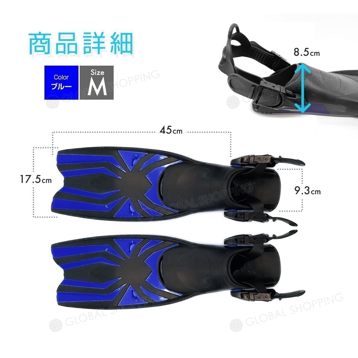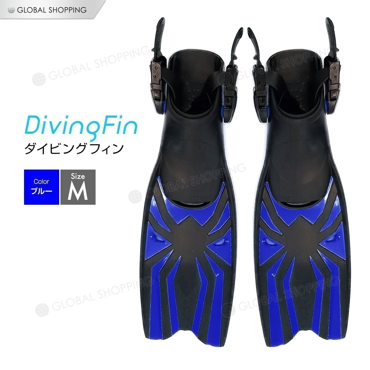 フィン シュノーケル 足ひれ スノーケリング シュノーケリング スキューバーダイビング マリンスポーツ 素潜り 川 青 ブルー Mサイズ