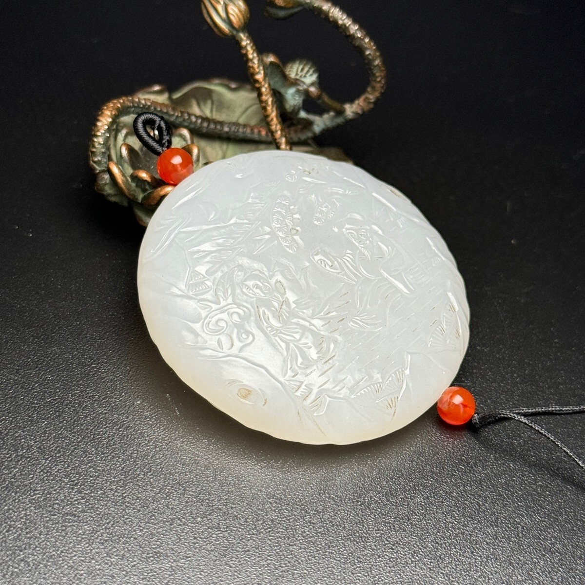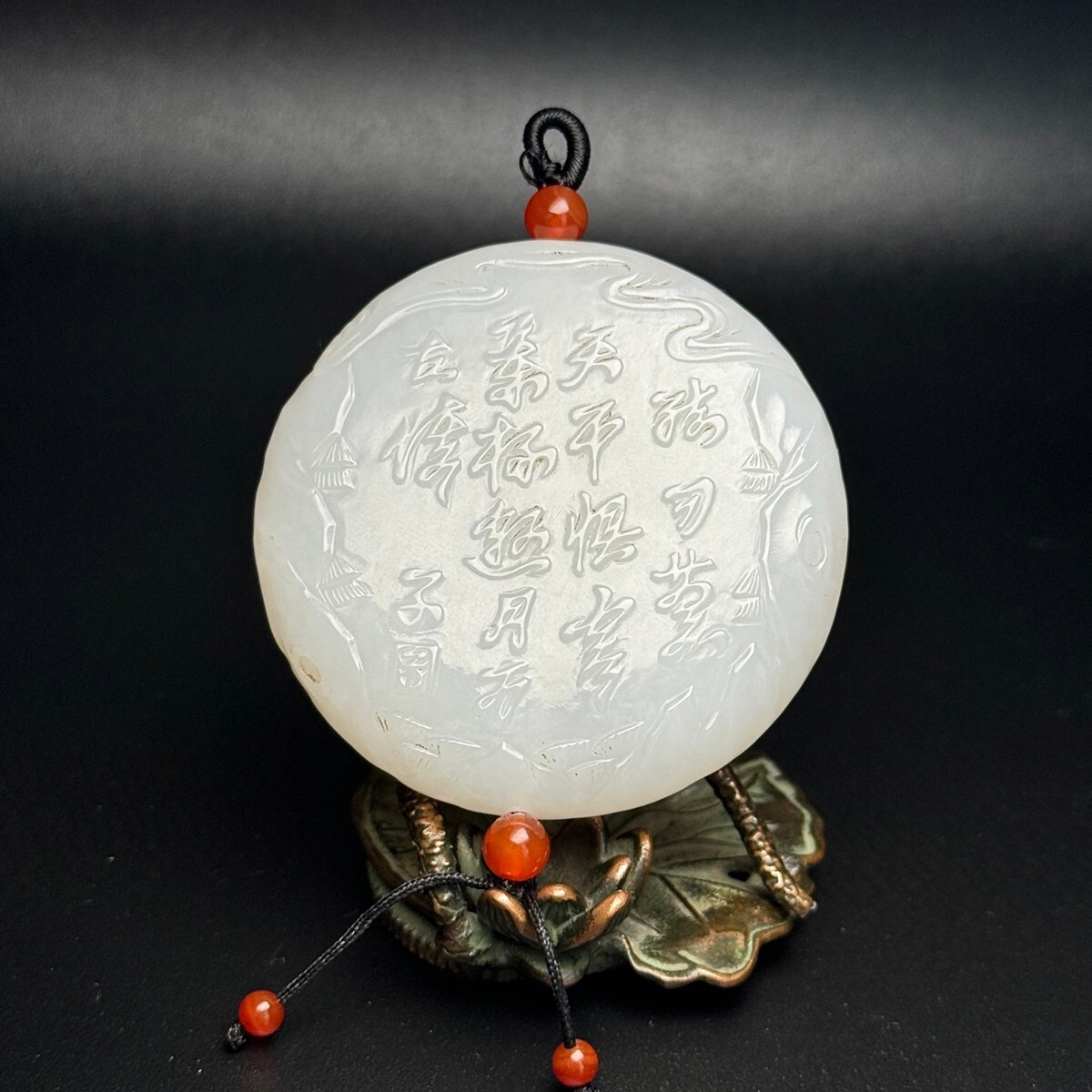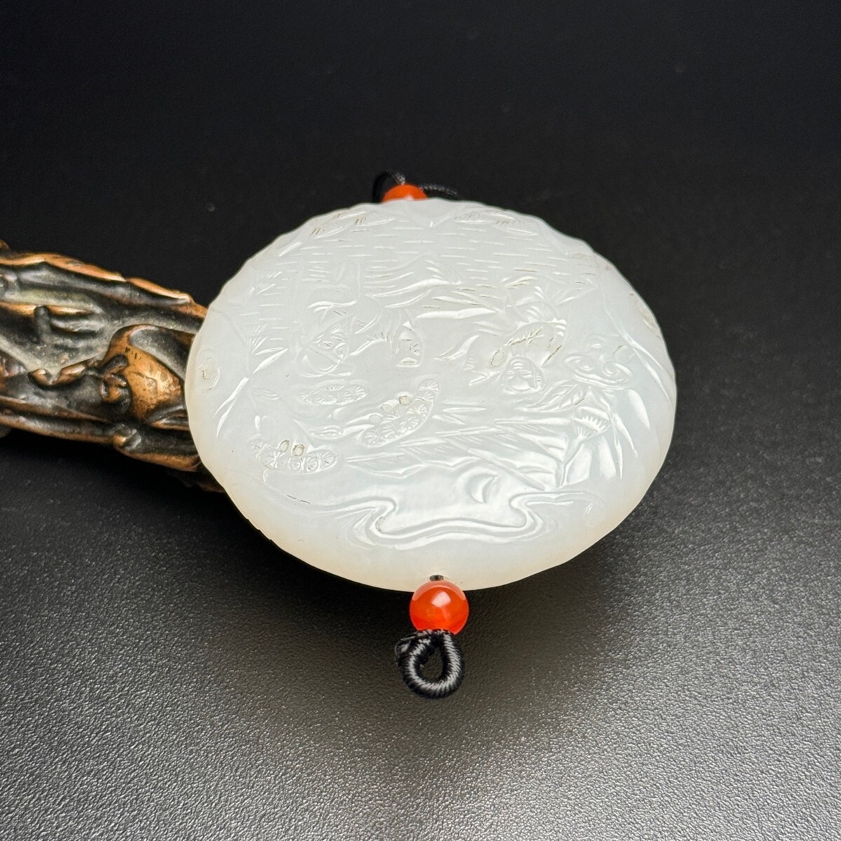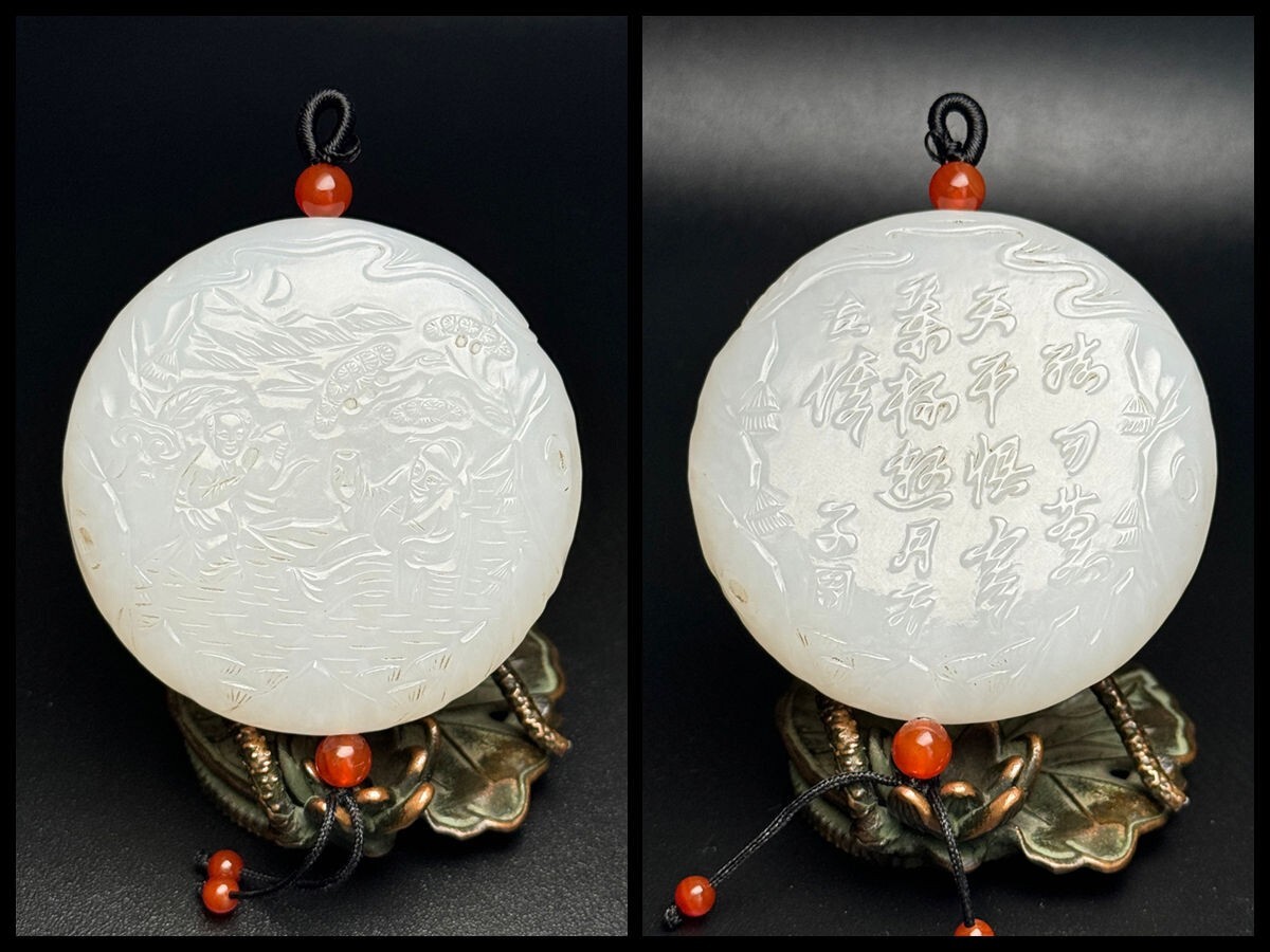 「清時代 和田玉 白玉彫り 福壽如意 李白醉酒 子岡牌」極細工 裝身具 賞物 中国古美術 旧蔵出