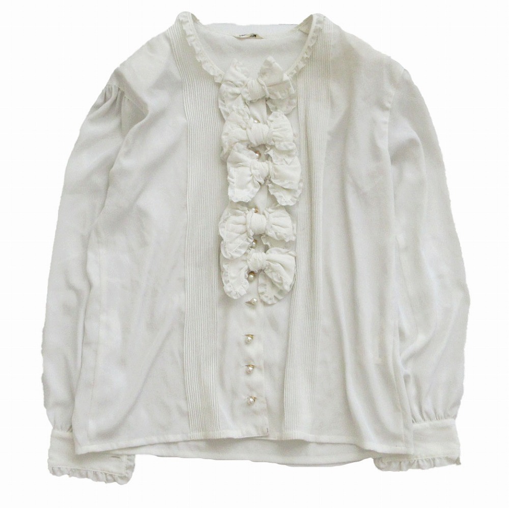 | 【INGEBORG インゲボルグ ピコフリル レース リボンブラウス トップス ホワイト 長袖 レディース P026VFB23】 | |