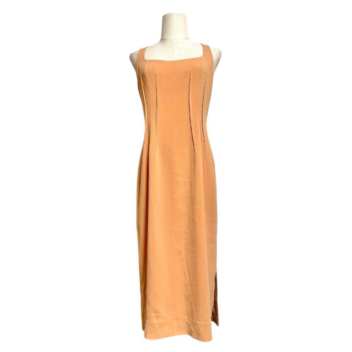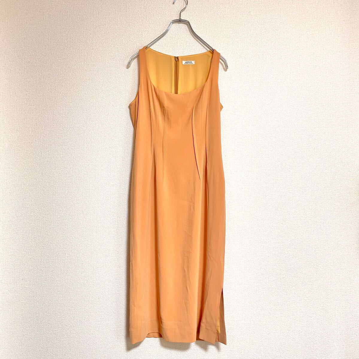 美シルエット タック スリット入り ノースリーブ ロングワンピース ドレス 日本製