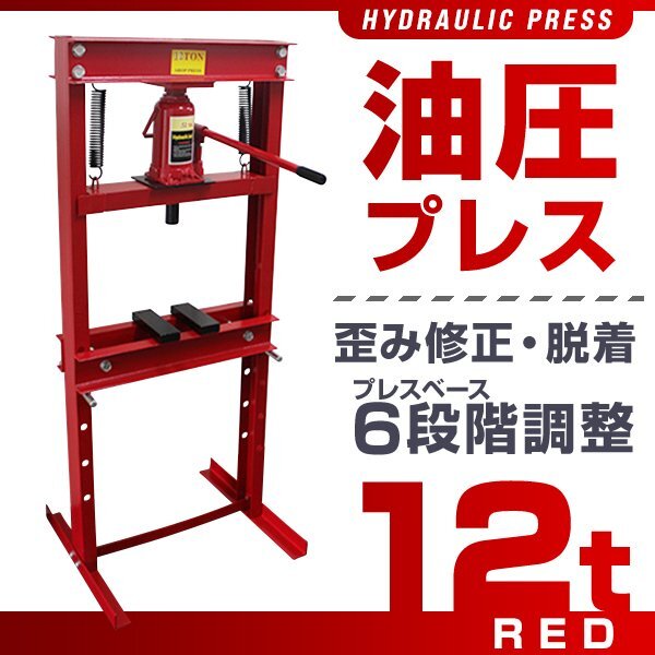 自動車・オートバイのメンテナンスに不可欠な油圧プレス 12tです。 12tまで圧力が掛けられますので大型パーツの圧入に最適です! 鉄板などの歪みの修正、シャフトの曲がり直しや ブッシュ及びベアリング類の脱着など、機械関係、自動車整備など広範囲に大活躍です! ■商品仕様 ・サイズ:(約)幅500×奥行き550×高さ1200mm ・重量:(約)43kg ・能力:12t ・有効作業幅:(約)0~450mm ・ジャッキ部延び幅(ストローク):(約)120mm 専用プレート2枚付き カラー:赤 ■注意事項 ・組み立てが必要です。 ・大型商品なので大人2人以上での組み立てをお勧めします。 ・写真と実物は多少異なる場合がございます。あらかじめご了承下さい。 ■メーター付き12t油圧プレスは こちら→ ■20t油圧プレスは こちら→ ■メーター付き10t油圧プレスは こちら→ ■油圧プレス用リングアタッチメントは こちら→ |