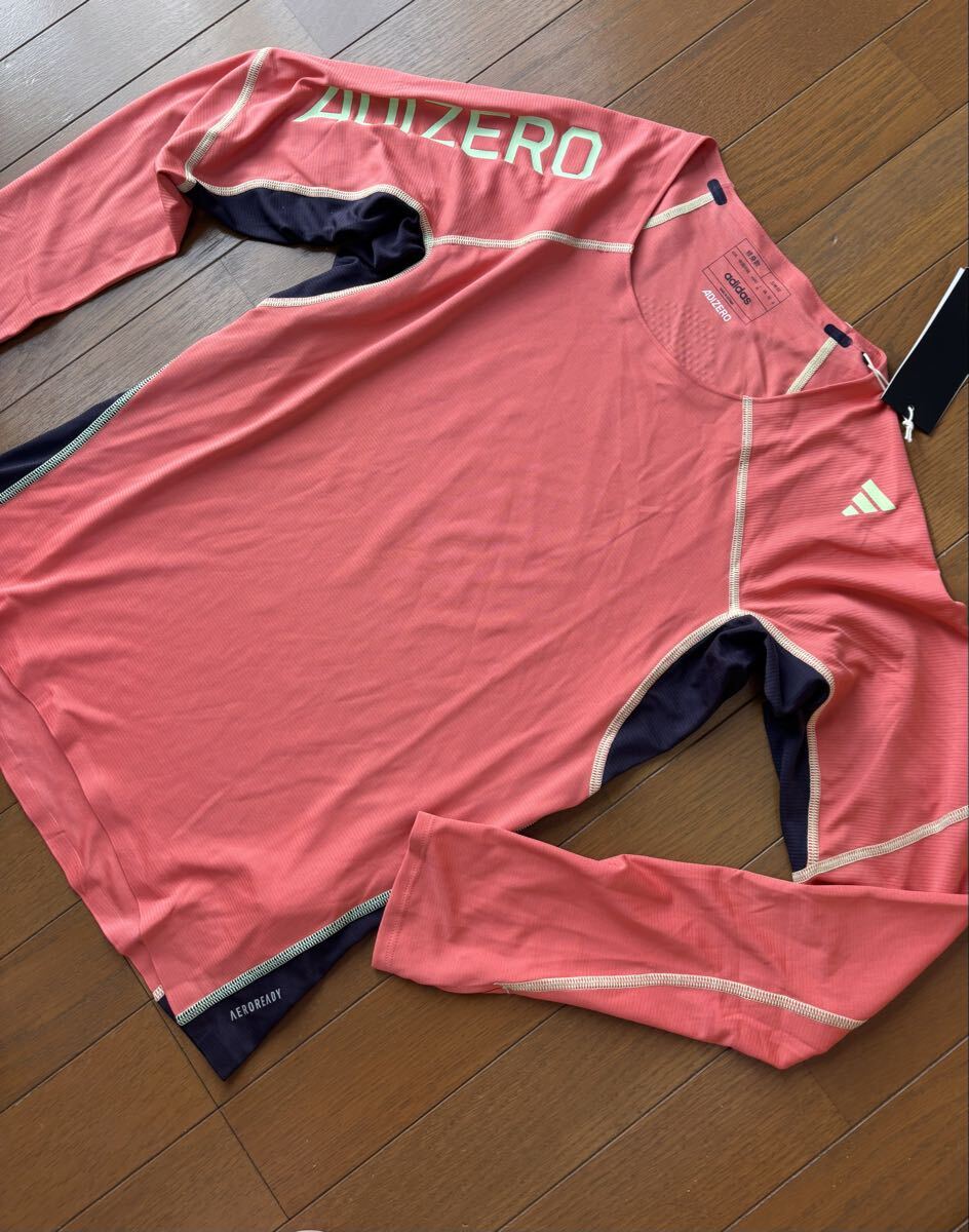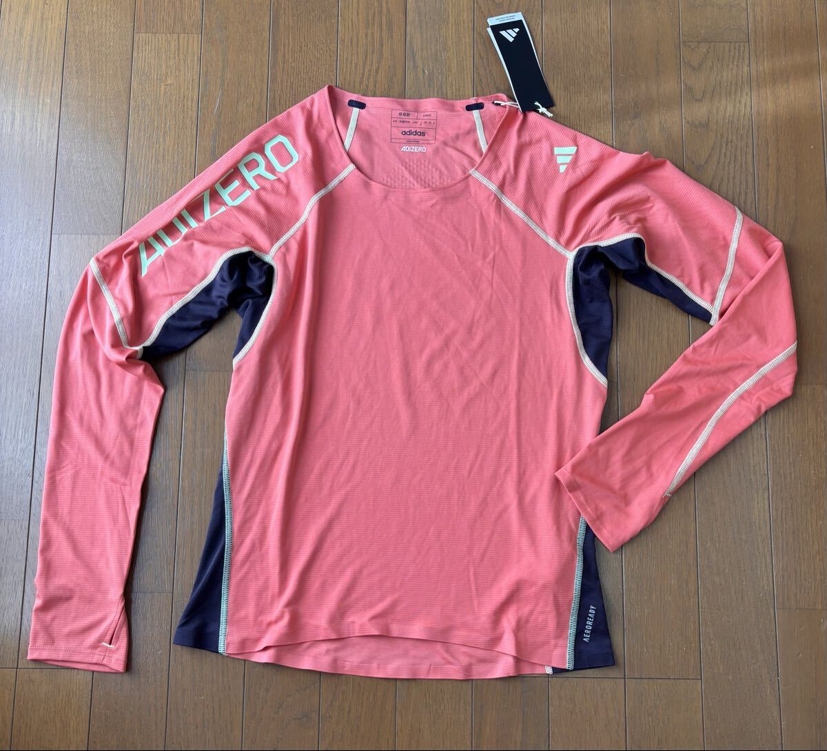 *サイズ XL(バスト87-90) *色 サーモンピンク *素材 ポリエステル100% ■トレーニングでもレースでも活躍する、軽量長袖ランニングTシャツ。 目標を達成するには、一秒一秒が大切。スピード重視で作られたハイテクギアがあれば、トレーニングでもレースでも、パワフルなパフォーマンスが引き出せる。今季紹介したいのは、雑念に惑わされずに自分の限界に挑戦できる、軽量ランニングウェアの新シリーズ。頭がクリアになり。何にも縛られない。このアディゼロ ランニング 長袖Tシャツを着て、トレーニングの目標に集中しよう。あと少しカバー力が必要なときにさっと羽織れる軽量レイヤー。汗を素早く吸収するAEROREADYテクノロジーが衣服内をドライに保ってくれる。考え抜かれて配置されたシーム構造が、肌への摩擦を抑え、快適な着心地を提供。さらにサムホール付きだから、自己ベストを求めてペースを上げて走るときも袖がずり上がらない。 |