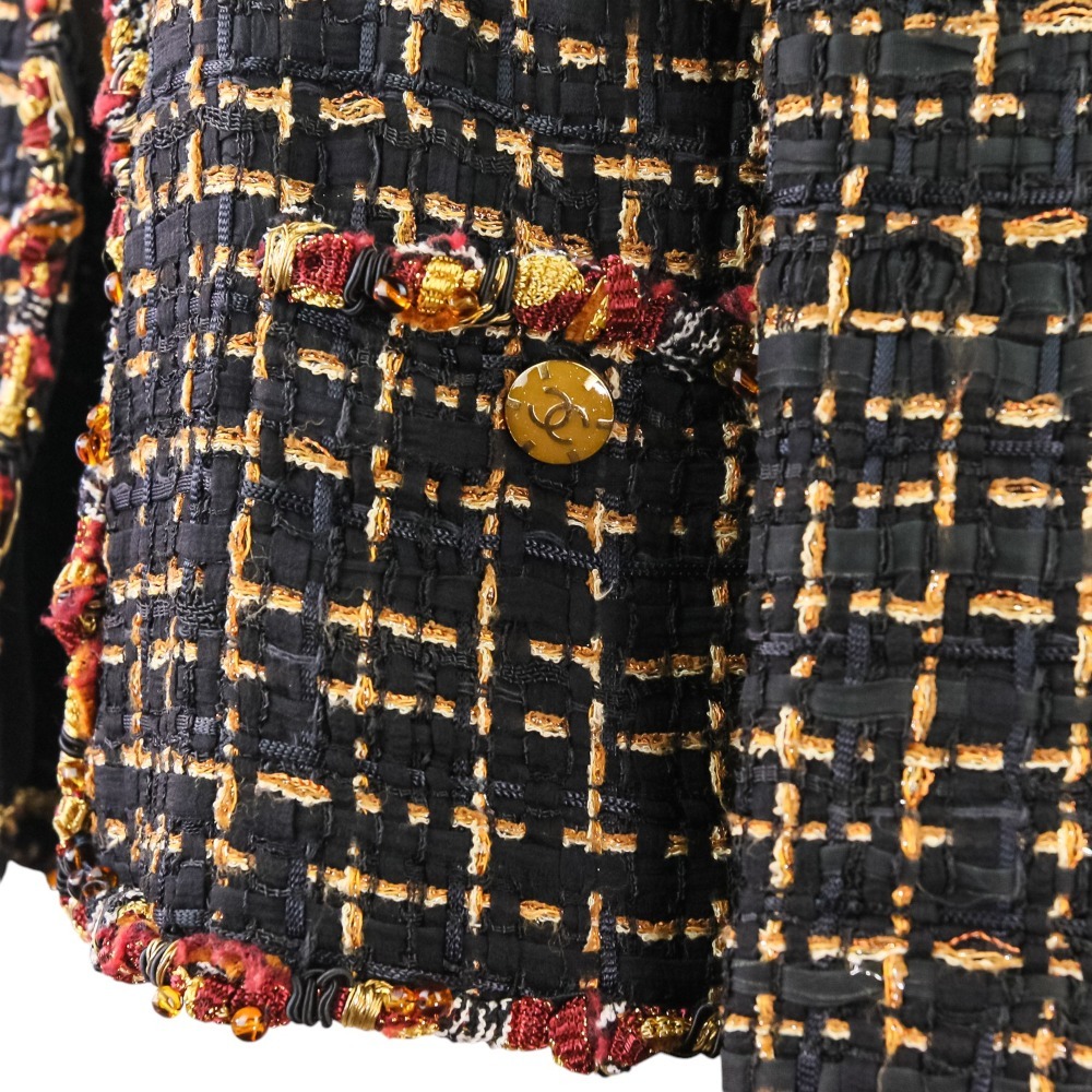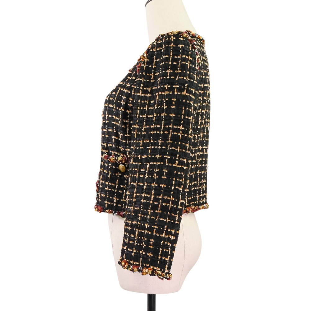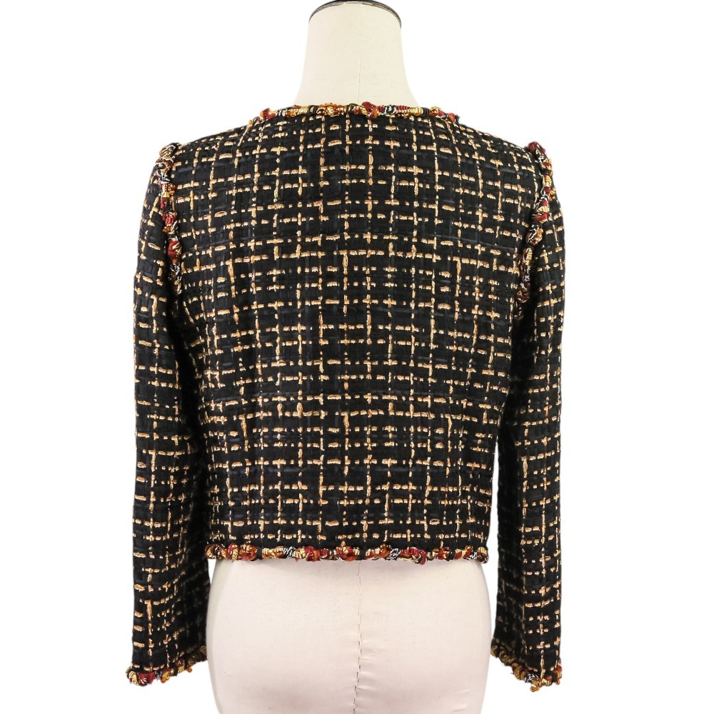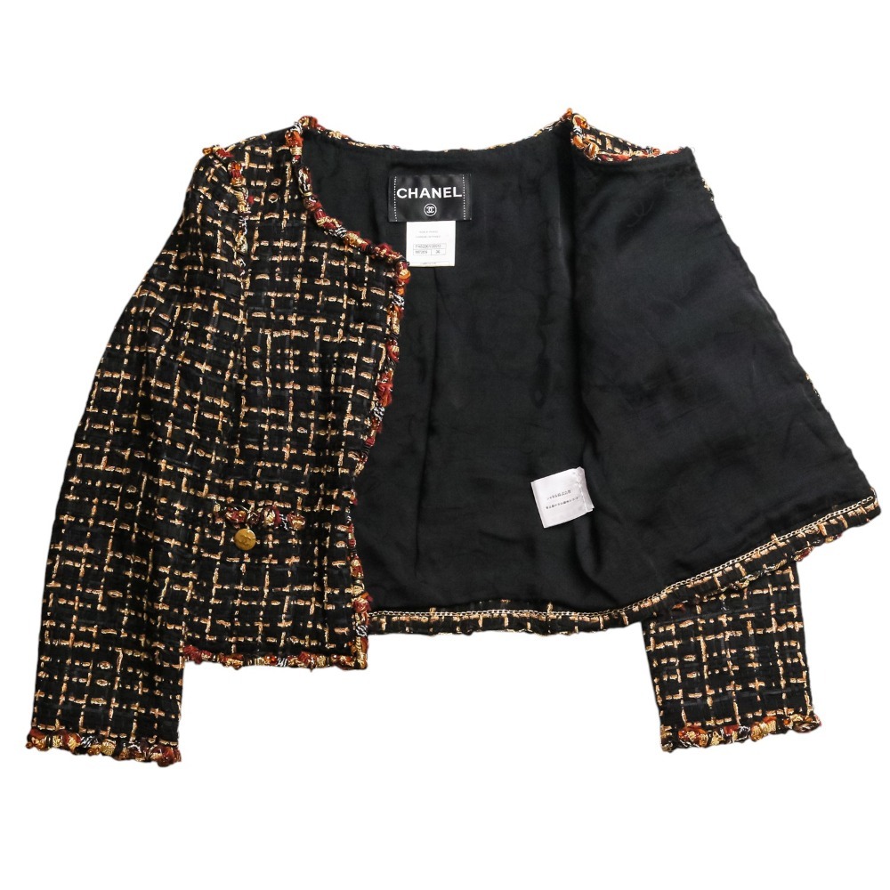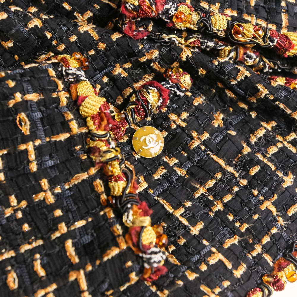 商品名:CHANEL シャネル ビーズ装飾 ココマークボタン ノーカラー ツイード ジャケット P40226 サイズ36 ブラック ブラウン
