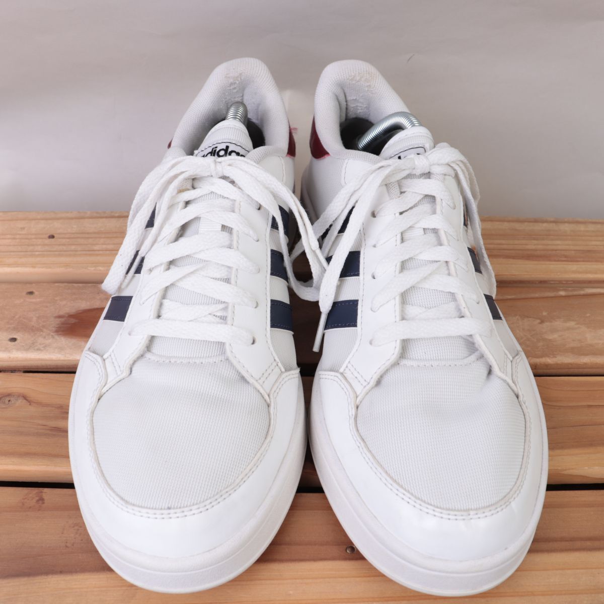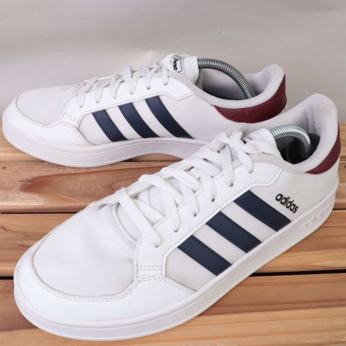 z1274 アディダス ネオ ブレイクネット US9 1/2 27.5cm/白 ホワイト ネイビー ワイン adidas neo Breaknet メンズ スニーカー 中古