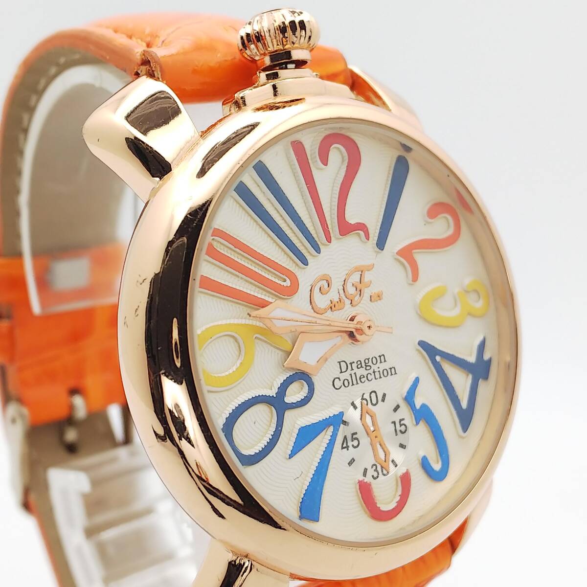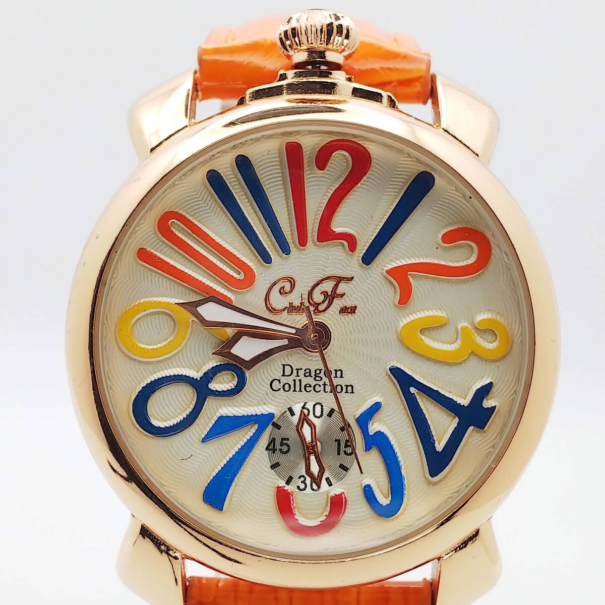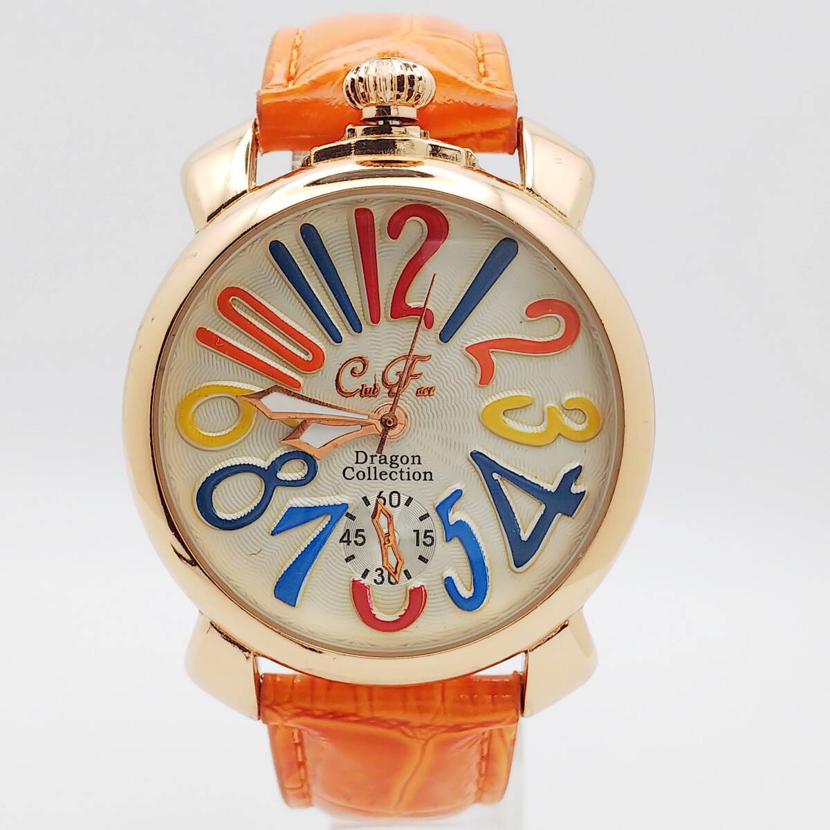 | 接写写真を掲載しているので、周りの撮影道具・光・影等が写り込んでいる場合があります 又肉眼では見えない微傷等が誇張されている場合があります スモールセコンドは飾り? 動いていません 多少の使用感がありますが、目だつ大きなダメージや汚れはありません 電池を新品に交換して順調に動いています化粧箱・取説・保証書・余りコマ等ありません、ベルトを含む本体のみです、写真が全てです ■状態(目視) ・文字盤・・・綺麗な状態です ・ガラス・・・綺麗な状態です ・ケース・・・微キズ・微スレ等見られますが、比較的綺麗です ・裏蓋・・・微キズ・微スレ等見られます ・ベルト・・・若干の使用感はありますが、綺麗です(純正品) ■リューズ操作等問題ありません 電池交換(2025.8月)後、96時間動作確認済・精度良好です 発送時十分動作を確認して発送いたしますが、中古時計の為到着後の動作保証は出来ませんのでご了承下さいませ。 発売・購入時期や販売価格・オーバーホール歴等不明です 中古品の為、現状の防水性はわかりません 突然出品を取り消す場合があります ■仕様 ケース素材:ステンレス ケースカラー:ゴールド 文字盤カラー: ケースサイズ(約):W39.0mm(リューズ含まない)×H46.6mm(ラグ含む) 厚み:約10.6mm ベルト幅:約19.9mm腕周り:約18.5cm以下 重さ:40g 470 | |||
