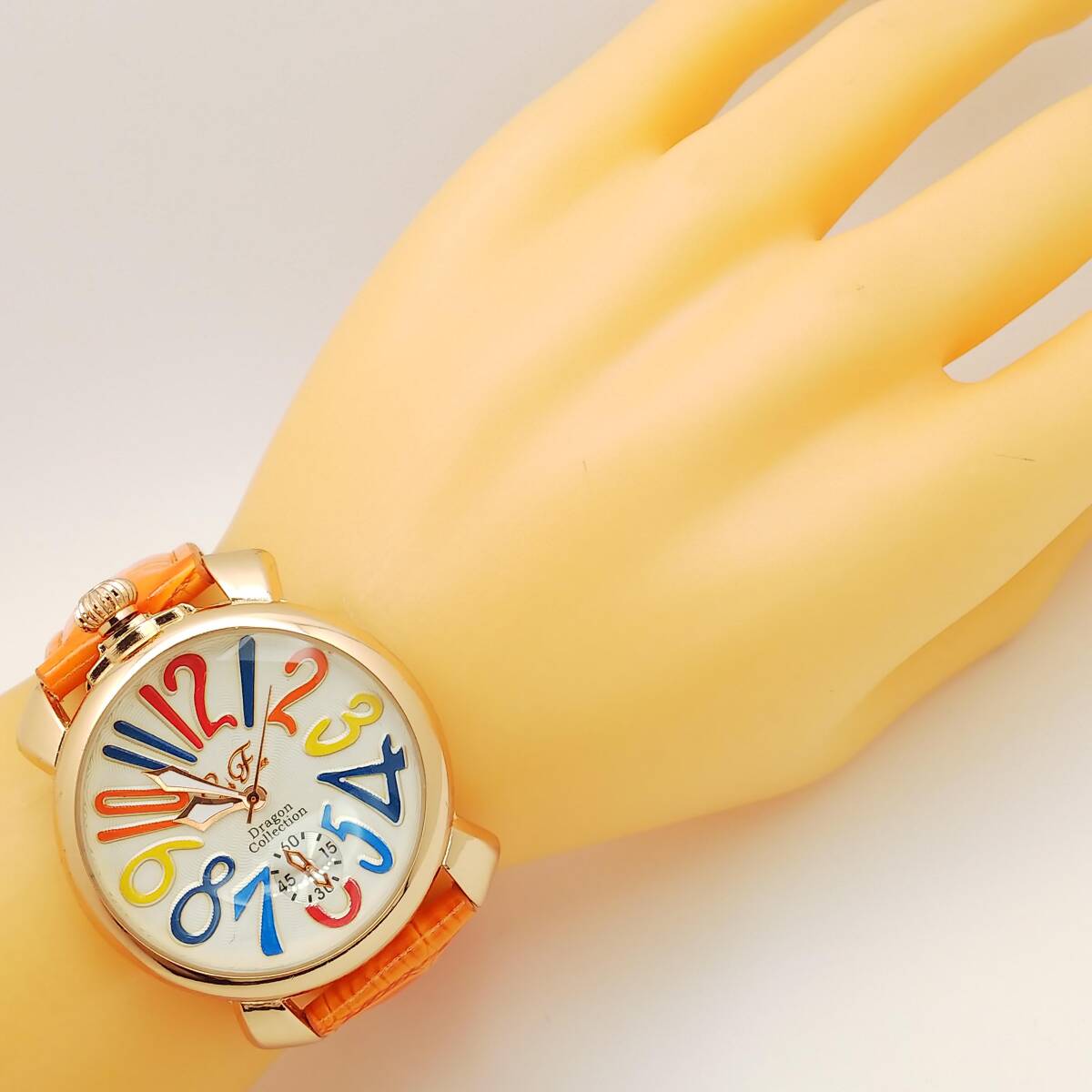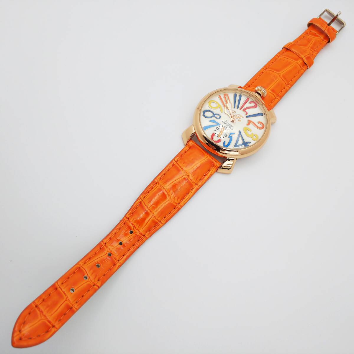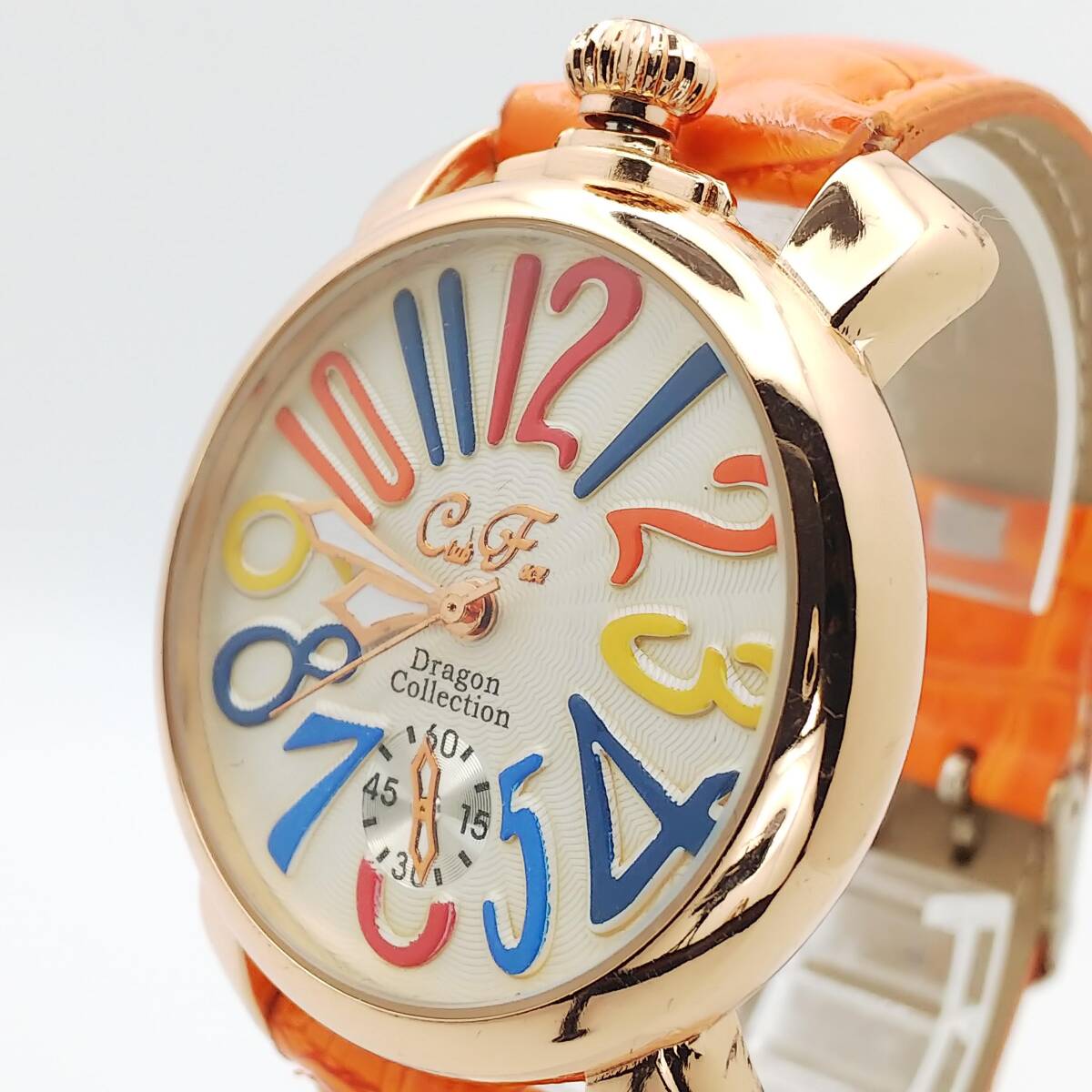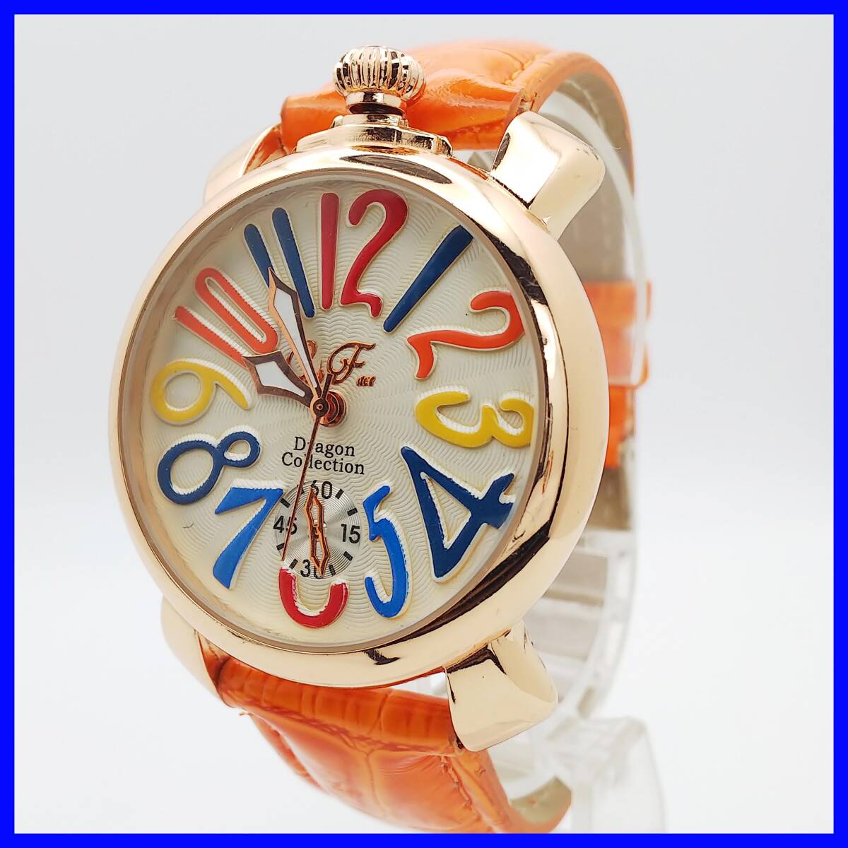| 接写写真を掲載しているので、周りの撮影道具・光・影等が写り込んでいる場合があります 又肉眼では見えない微傷等が誇張されている場合があります スモールセコンドは飾り? 動いていません 多少の使用感がありますが、目だつ大きなダメージや汚れはありません 電池を新品に交換して順調に動いています化粧箱・取説・保証書・余りコマ等ありません、ベルトを含む本体のみです、写真が全てです ■状態(目視) ・文字盤・・・綺麗な状態です ・ガラス・・・綺麗な状態です ・ケース・・・微キズ・微スレ等見られますが、比較的綺麗です ・裏蓋・・・微キズ・微スレ等見られます ・ベルト・・・若干の使用感はありますが、綺麗です(純正品) ■リューズ操作等問題ありません 電池交換(2025.8月)後、96時間動作確認済・精度良好です 発送時十分動作を確認して発送いたしますが、中古時計の為到着後の動作保証は出来ませんのでご了承下さいませ。 発売・購入時期や販売価格・オーバーホール歴等不明です 中古品の為、現状の防水性はわかりません 突然出品を取り消す場合があります ■仕様 ケース素材:ステンレス ケースカラー:ゴールド 文字盤カラー: ケースサイズ(約):W39.0mm(リューズ含まない)×H46.6mm(ラグ含む) 厚み:約10.6mm ベルト幅:約19.9mm腕周り:約18.5cm以下 重さ:40g 470 | |||