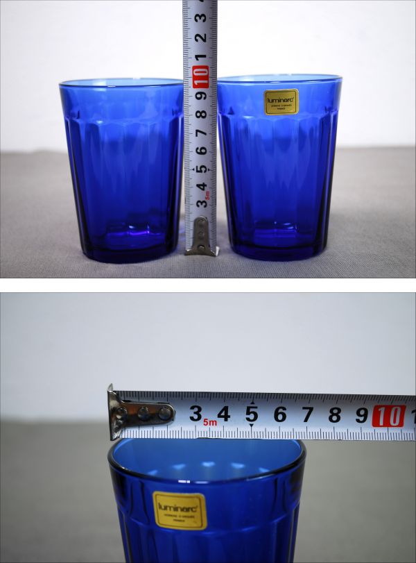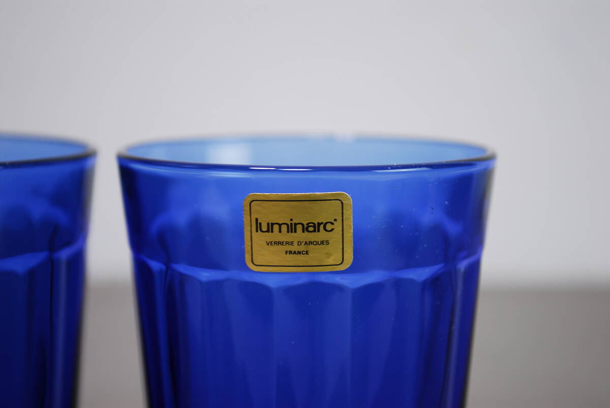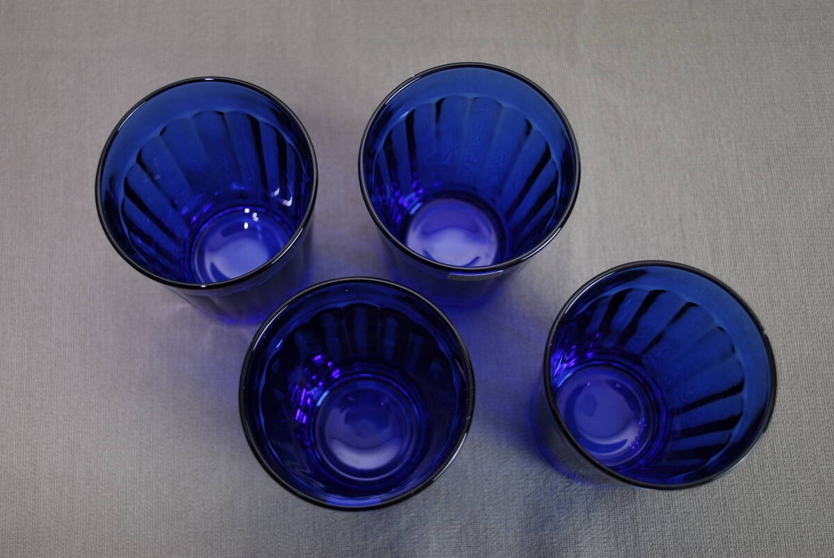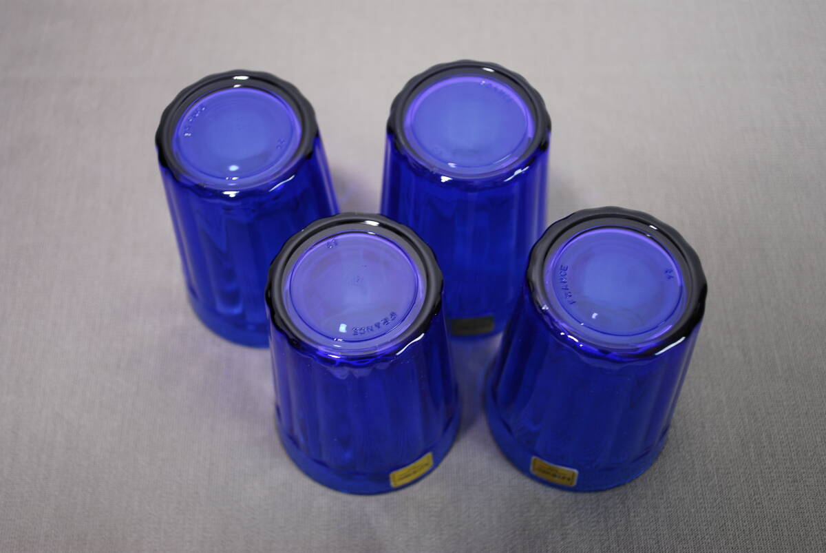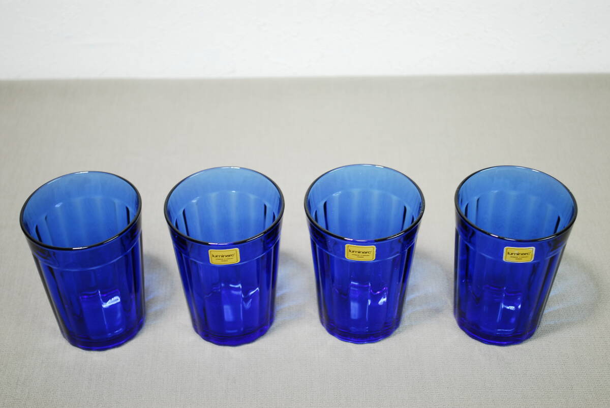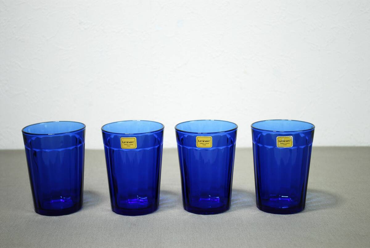 | グラス タンブラー コップ ブルー 青 luminarc 4個セット/検索用 当時物 昭和 アンティーク レトロ【08017】 | ||