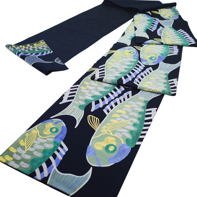 黒地に映えるのは、大胆に配された魚のデザイン。