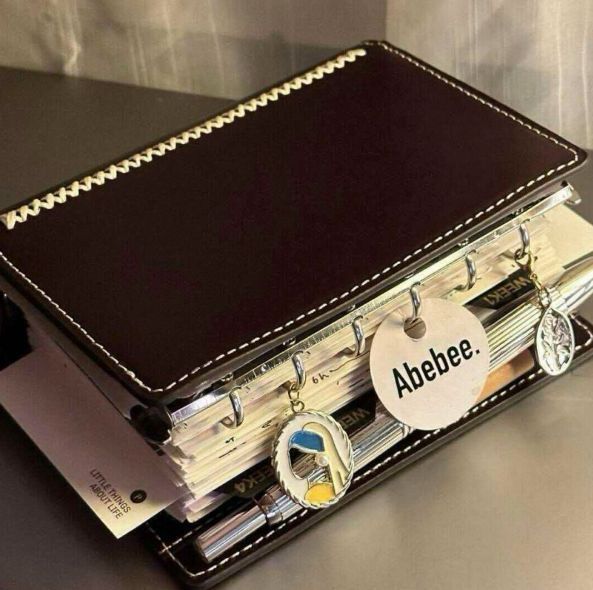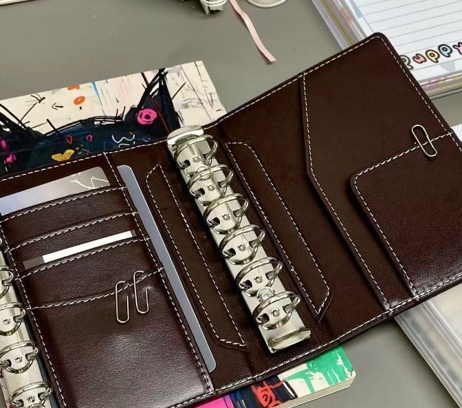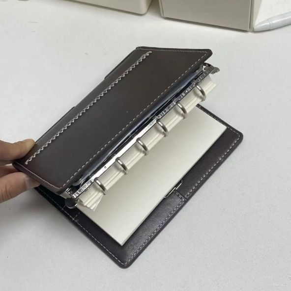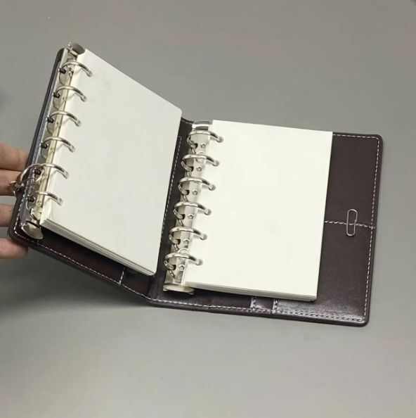 システム手帳 ダブルリング A7 無地80枚 カバー 3個ストラップ バインダー リフィル付き ミニ ブラウン