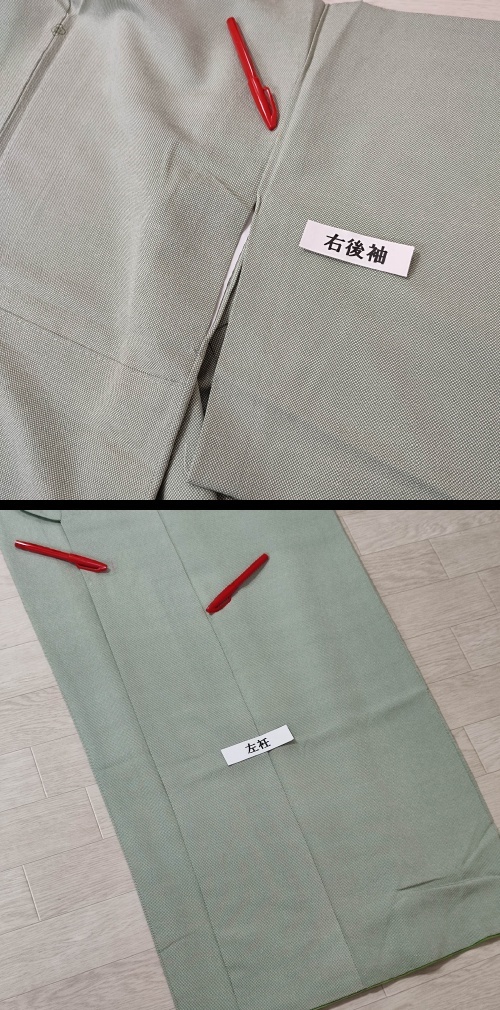 梱包方法 | 三つ折にした着物をさらに半分にして簡易包装にて発送いたします。タトウ紙などは有りません。 シワなどつきますのでご理解下さい。 |
