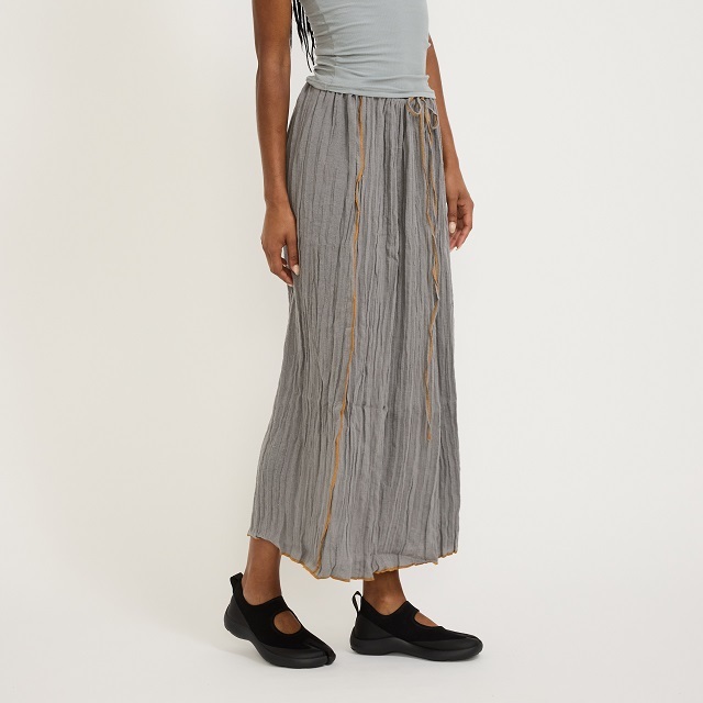 新品 BASERANGE ベースレンジ 25SS MAX SKIRT - Crinkle Linen コットンリネン ロングスカート SKMX-LC-SP25 XS Bayon Grey 定価27,280円