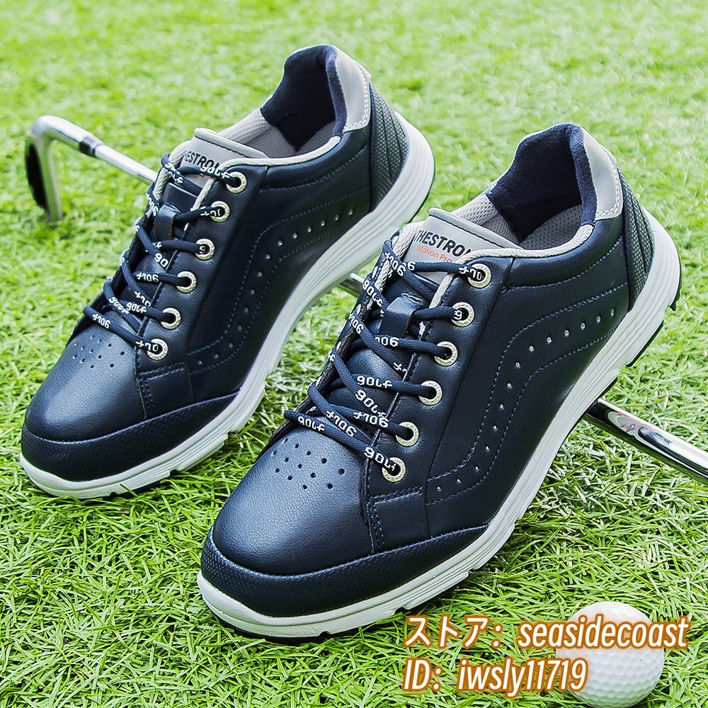 絶賛★ゴルフシューズ メンズ 新品 スポーツシューズ 幅広 運動靴 強いグリップ 紳士スニーカー フィット感 防滑耐磨 撥水 ネイビー 27.0cm