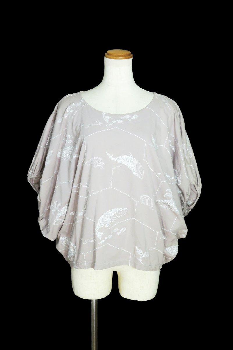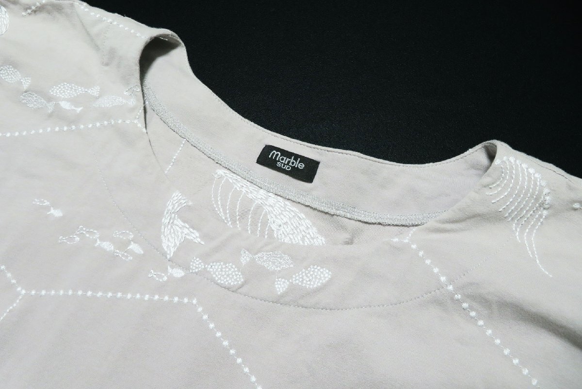 ☆美品☆MarbleSUDマーブルシュッド/クジラ刺繍半袖プルオーバー:ピンクベージュnl692