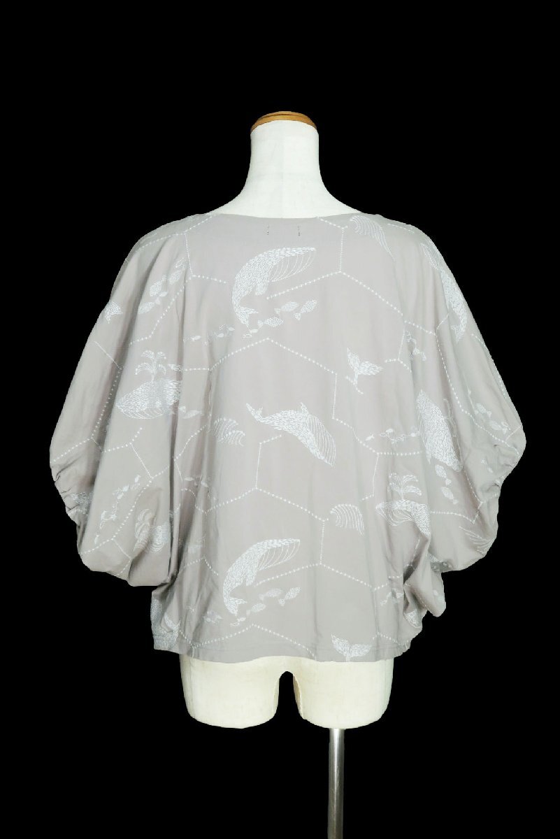 全体に白のクジラが刺繍されています。