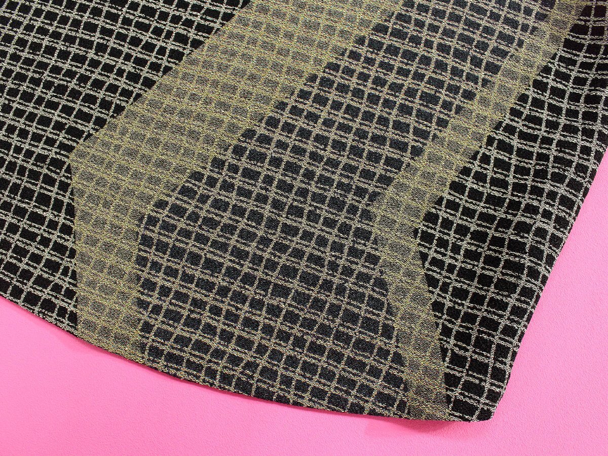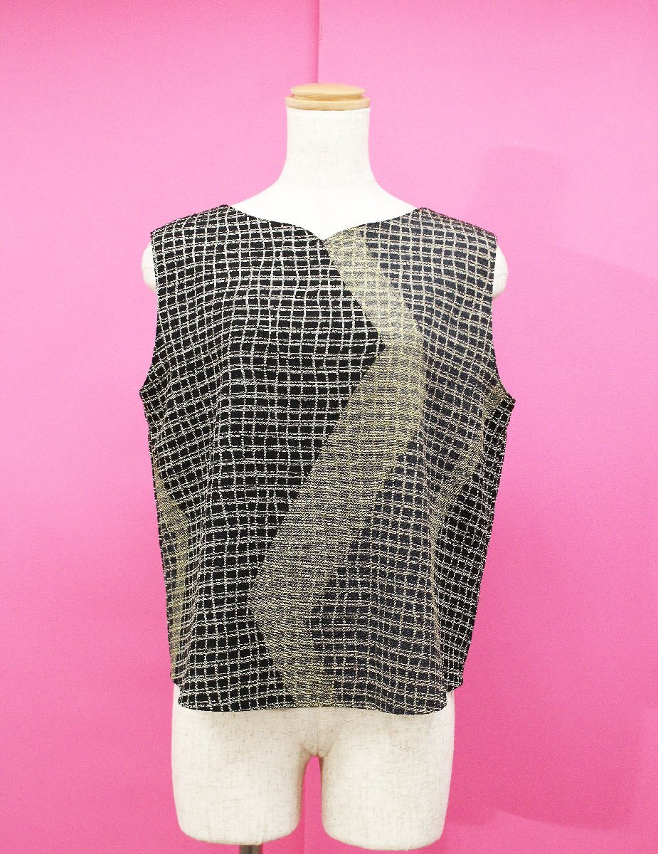 美品 ヒトシタムラ/詩仙堂 洗える/ちりめん織り総柄ノースリーブベスト 黒ベージュ rl702