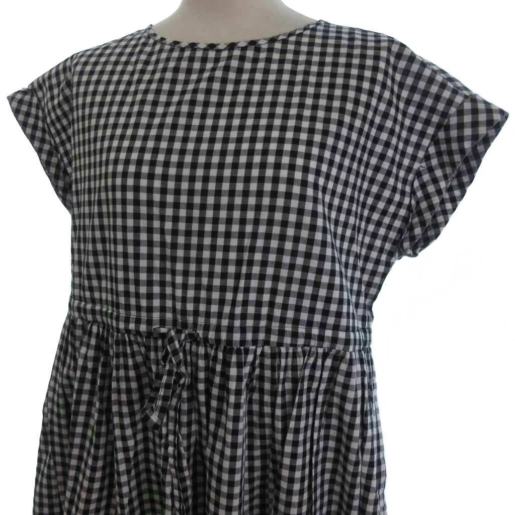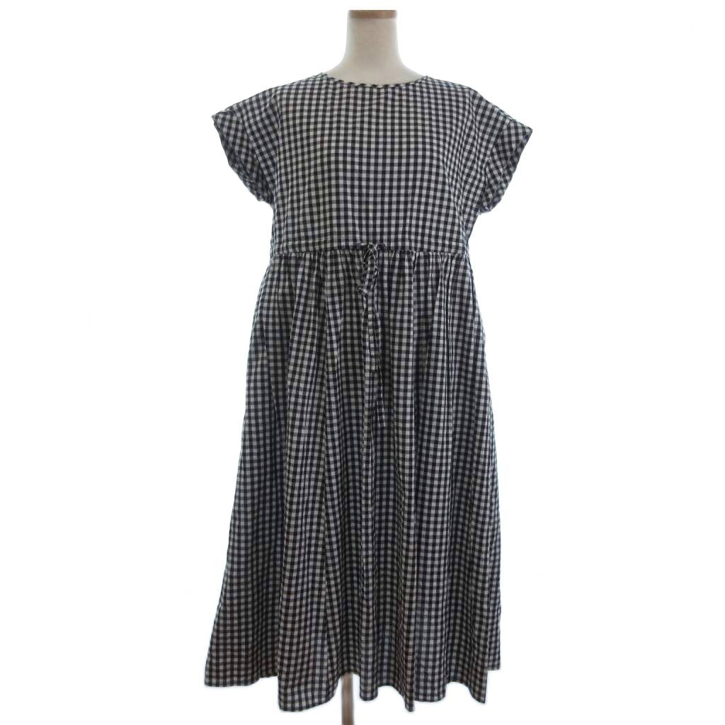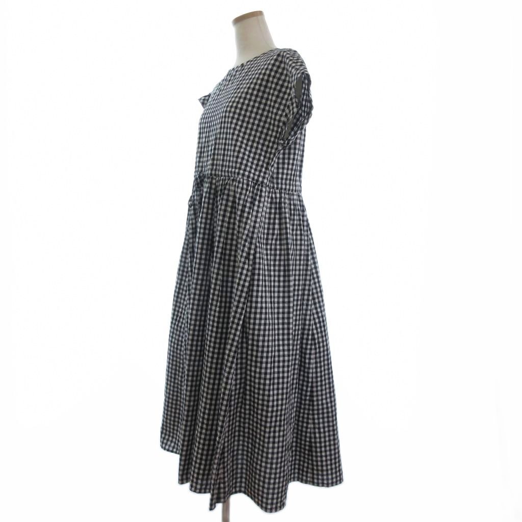 トゥービーバイアニエスベー To b. by agnes b. 美品 ギンガムチェック ロング ドレス ワンピース フレンチスリーブ 5730WU23 黒 ブラック系 36 S位 レディース