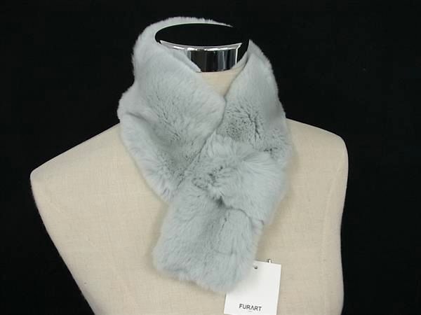 ■新品■未使用■ FURART ファーアート レッキスファー ラビット ティペット マフラー 防寒具 レディース ライトブルー系 DG0903
