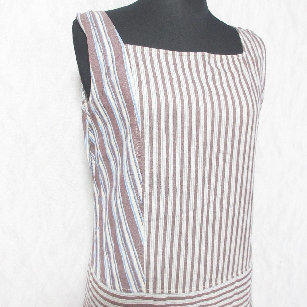 美品 45rpm フォーティファイブアールピーエム ストライプノースリーブワンピース サイズ1 ブラウン ベージュ