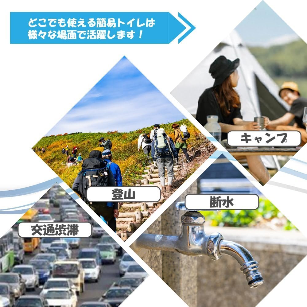 交通渋滞、登山、キャンプ、断水など様々な場面で活躍