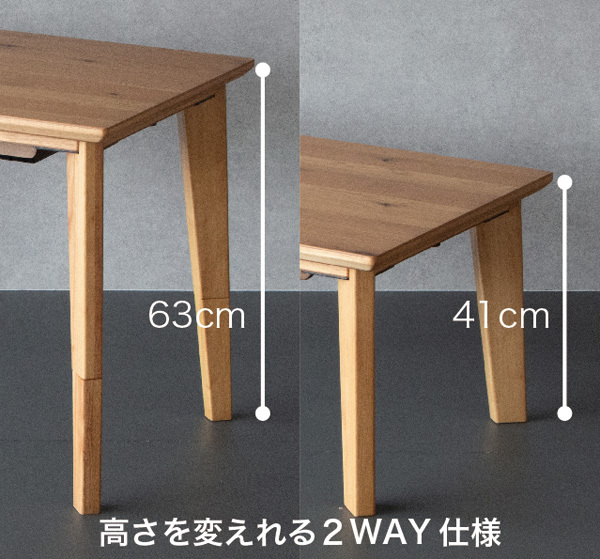 高さを変えられる2ウェイのダイニングこたつテーブルです。