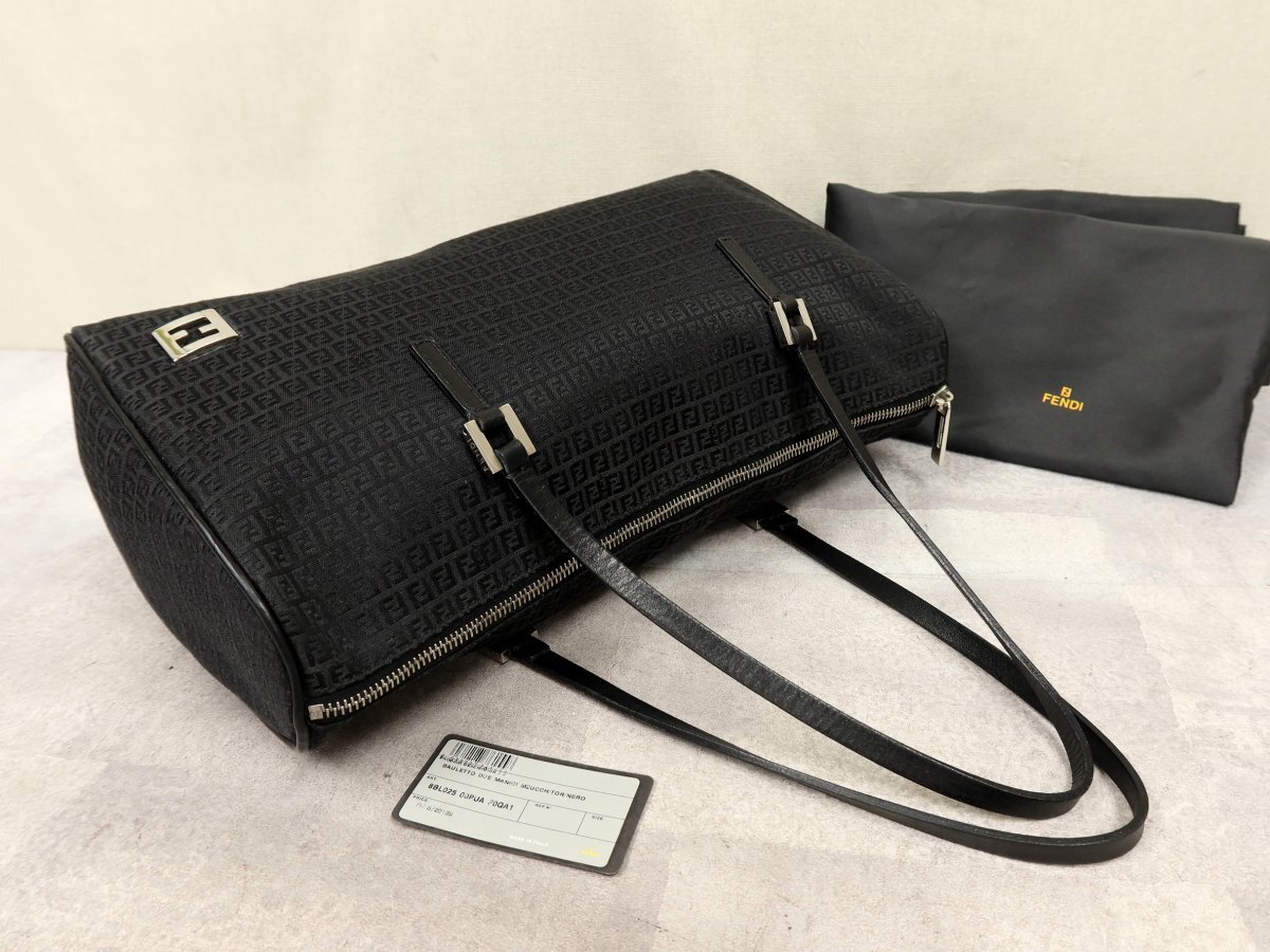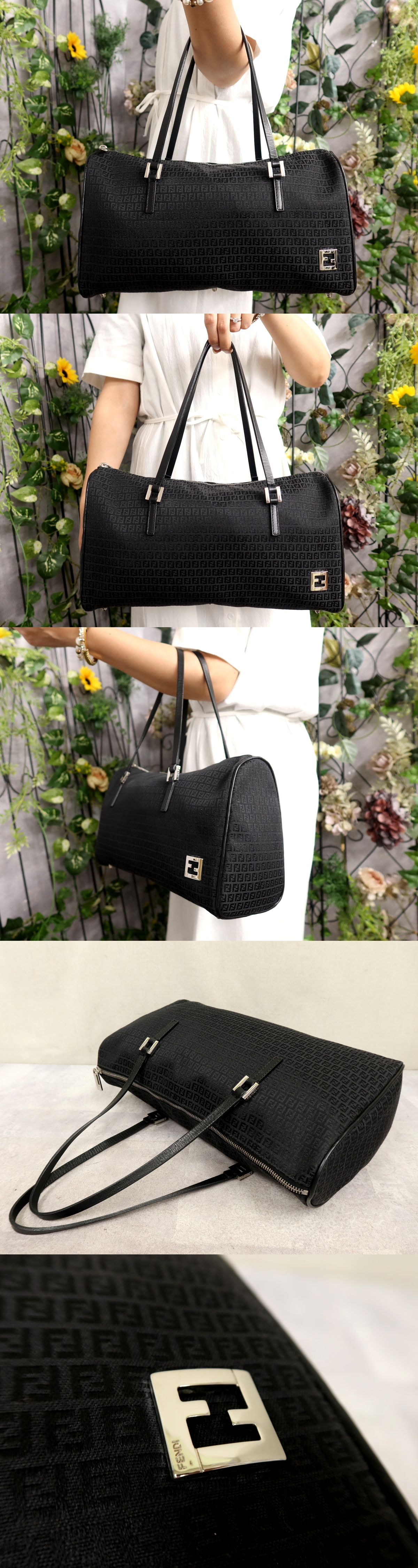 ●超美品●FENDI フェンディ●ズッキーノ●キャンバス カーフ レザー 本革●ボストン ハンド バッグ●黒●シルバー金具●腕掛け●Js59735