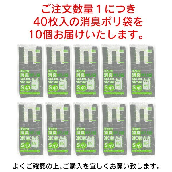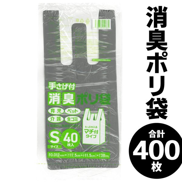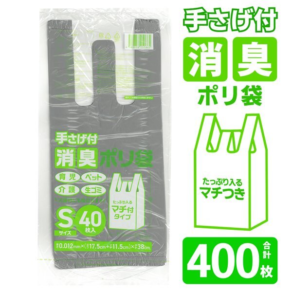 | Sサイズ マチ付 手さげ付消臭ポリ袋 40枚入×10個セット |