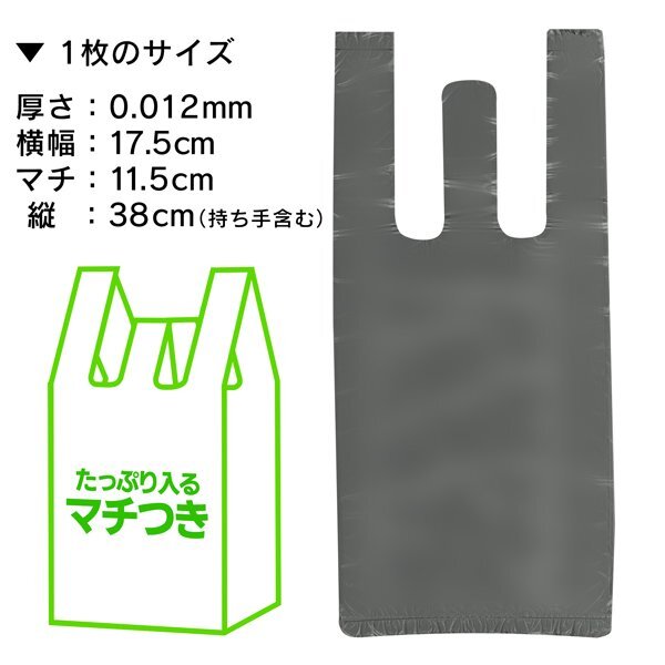 | 1枚のサイズ | 厚さ:0.012mm 横幅:17.5cm マチ:11.5cm 縦:38cm(持ち手含む) |