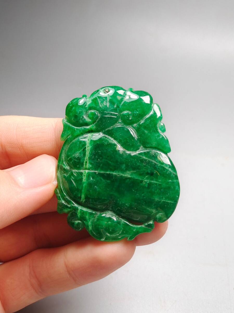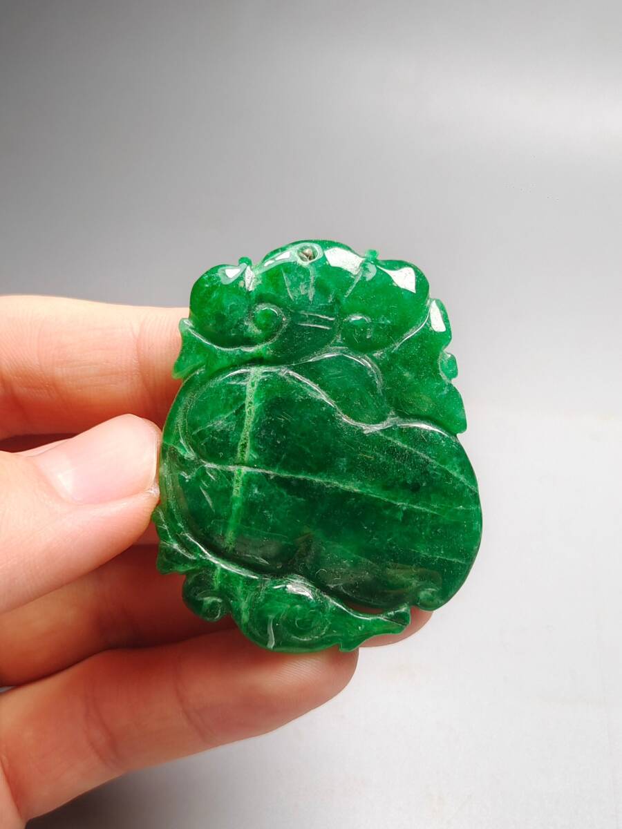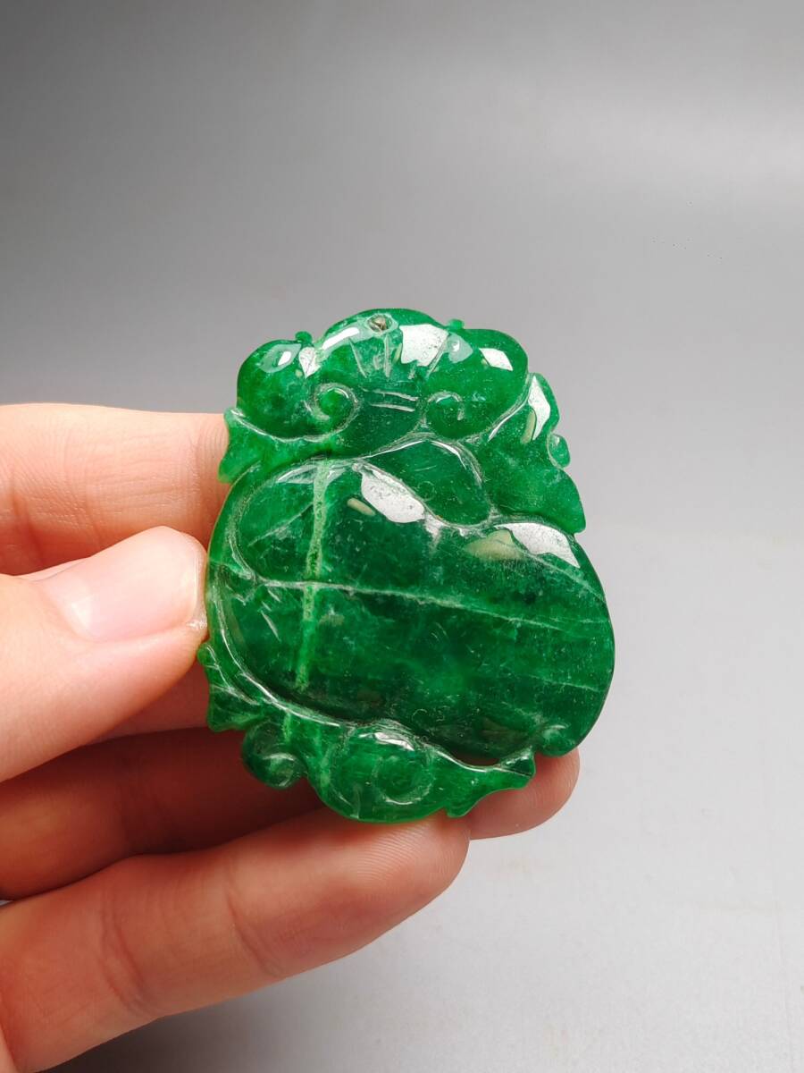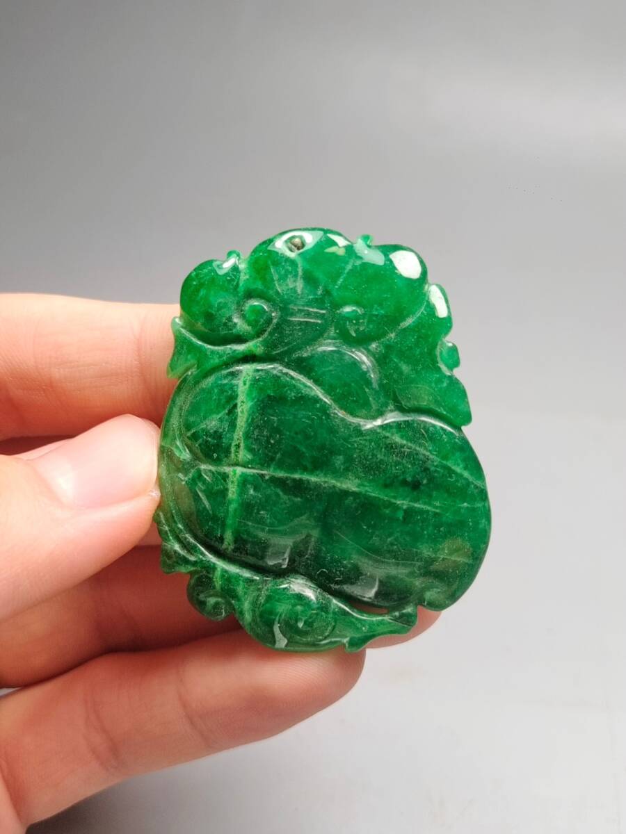 『清・翡翠細密彫・沁色自然・福寿如意ペンダント・根付・裝身具』極細工 置物 古賞物 中国古玩 中国古美術