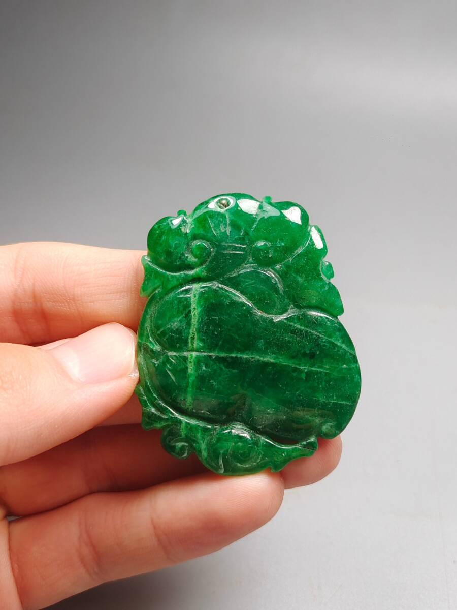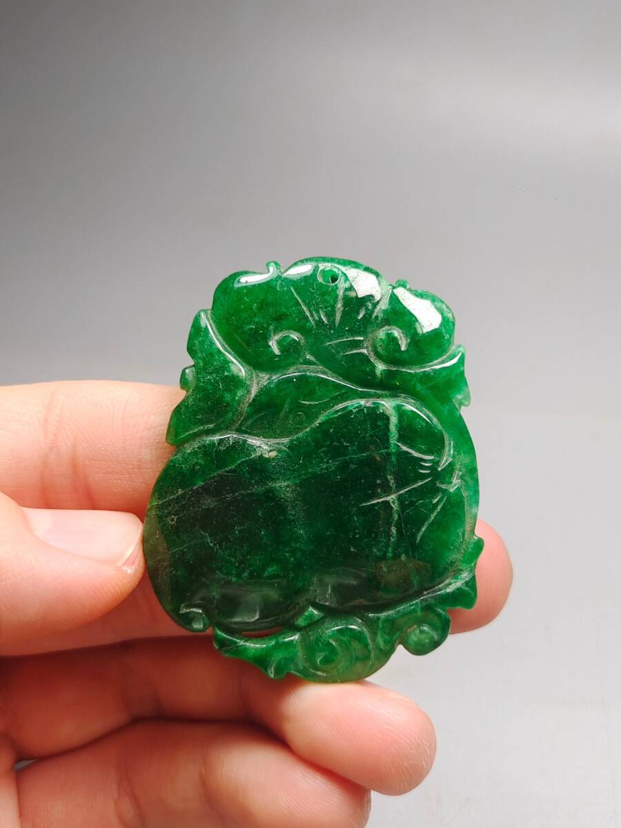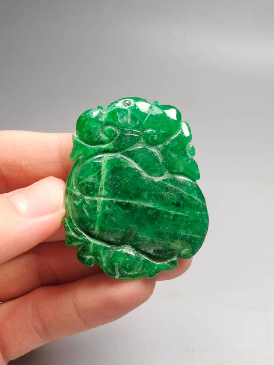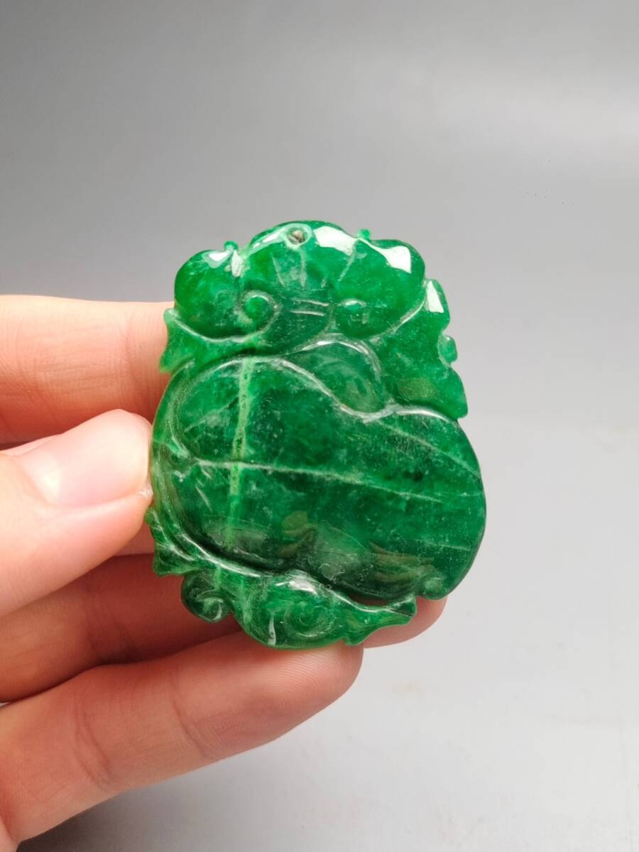 『清・翡翠細密彫・沁色自然・福寿如意ペンダント・根付・裝身具』極細工 置物 古賞物 中国古玩 中国古美術