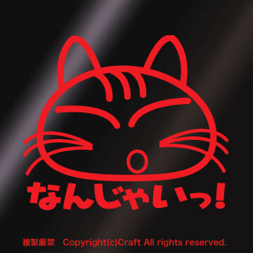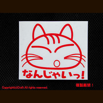 「なんじゃいっ!」猫/ステッカー(赤,ねこ,cat/9cm)屋外耐候素材