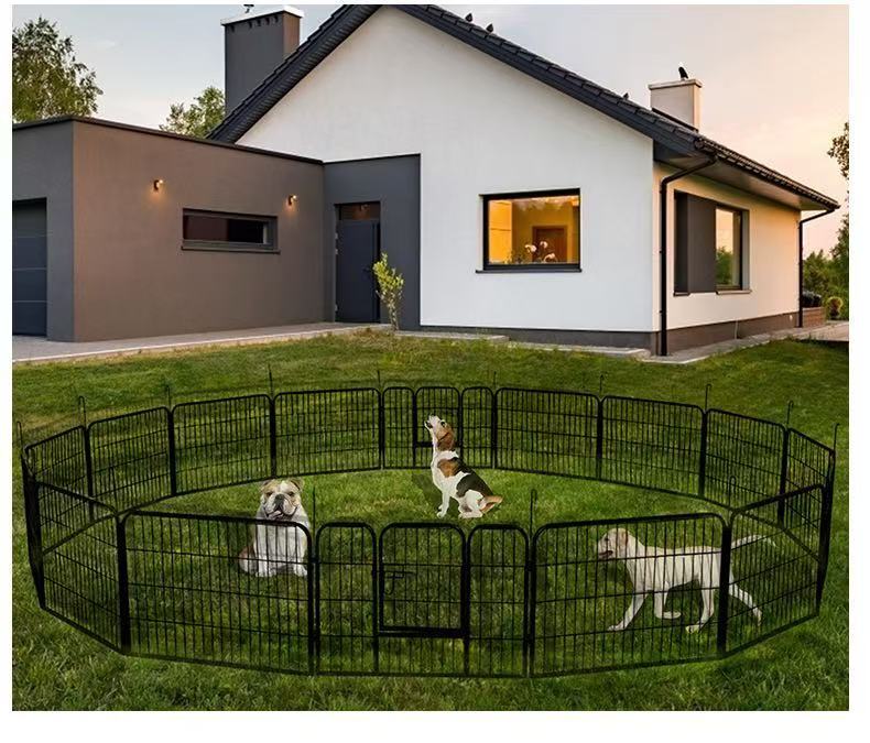 ■新品■ペットサークル 犬猫 小動物用 大型 ペットフェンス カタチ変更可 扉付き 室内外兼用 犬ゲージ(100x120cm)8枚セット | |||