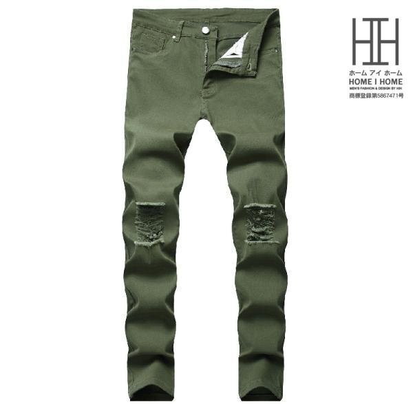 スキニー パンツ ジーンズ デニムパンツ メンズ ボトムス スリム 細身 美脚 ダメージ加工 アメカジ ストリート系 多色 白ジーンズ