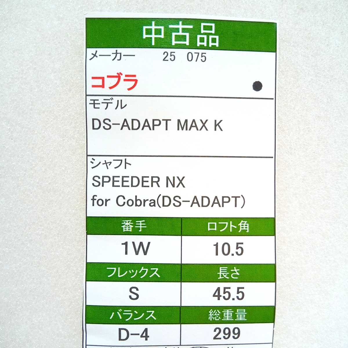 【即決価格】【1W】コブラ/ダークスピードアダプトMAX k/10.5度/SPEEDER NX for コブラ(DS−ADAPT)FLEX S/カバー無し