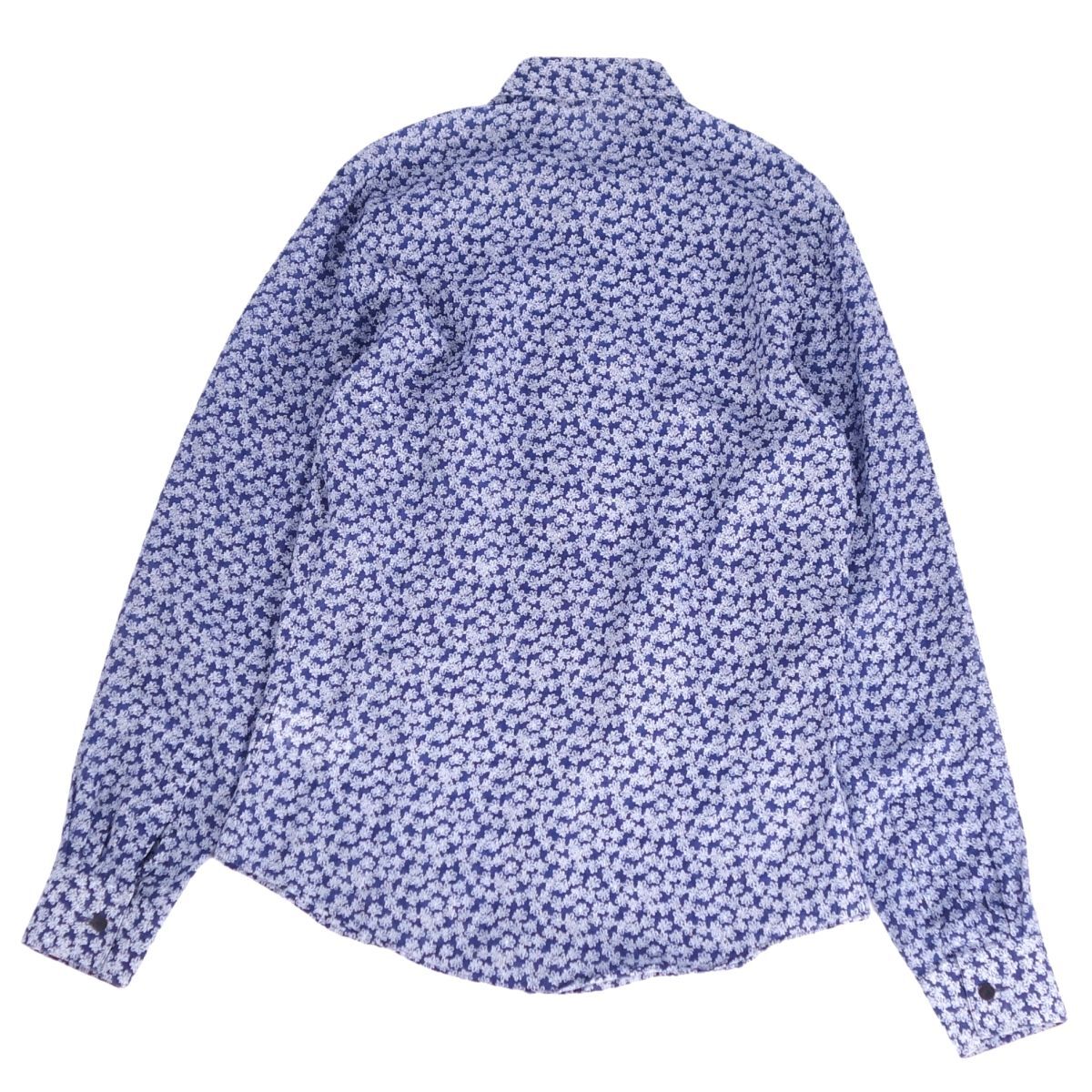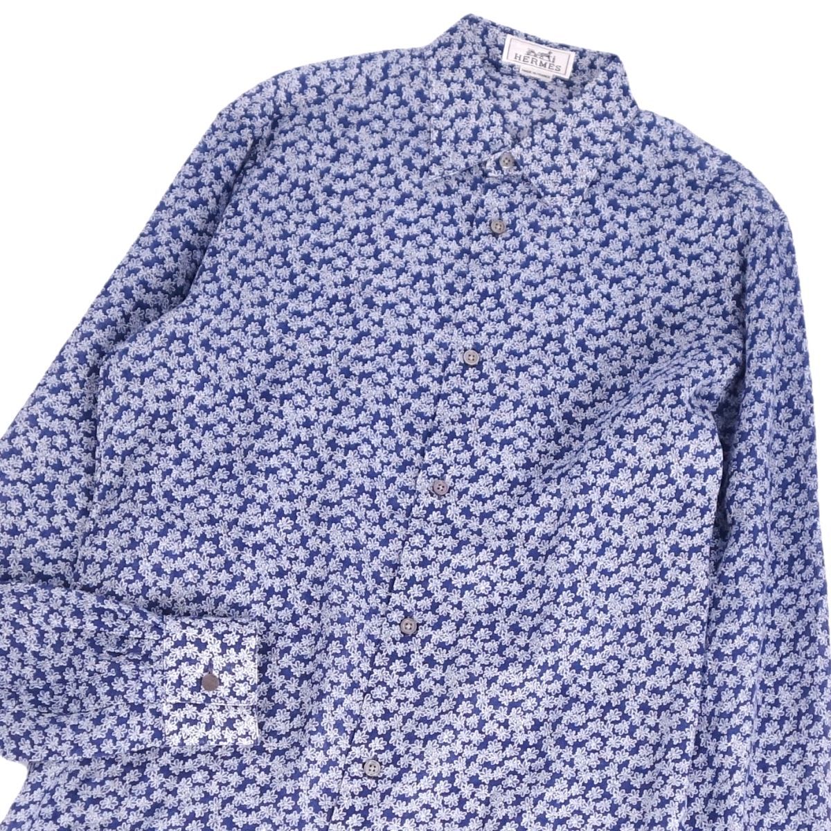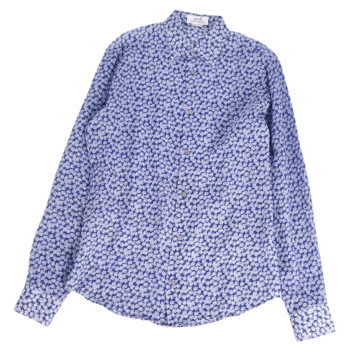 | 美品 エルメス HERMES シャツ ロングスリーブ 長袖 総柄 リネン トップス メンズ フランス製 15/38 ネイビー/ブルー |