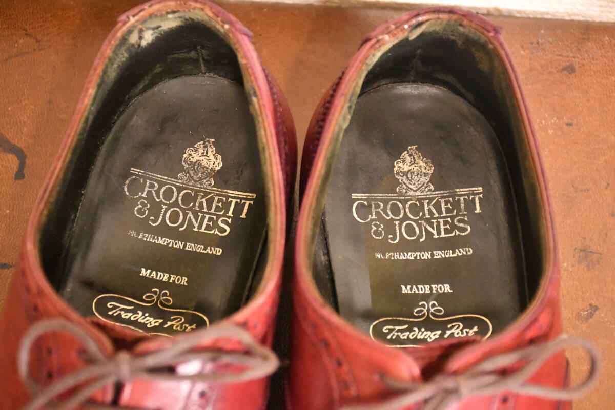 クロケットアンドジョーンズのフルブローグシューズ、ジェラード4です。トレーディングポストの別注品で、先が細めの綺麗なアーモンドトゥが特徴的。ボリュームも抑え目で、セットアップと合わせてもお洒落に履けそうです。