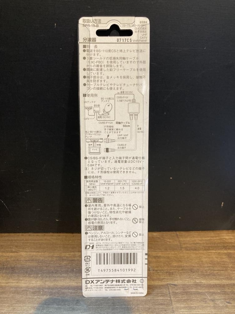 DXアンテナ ■商品名 CS/BS-IF+UV分波器 ■型番 SPR-10-B |
