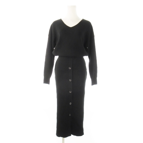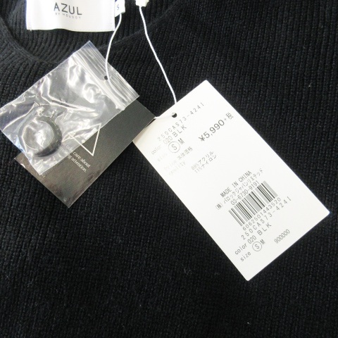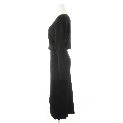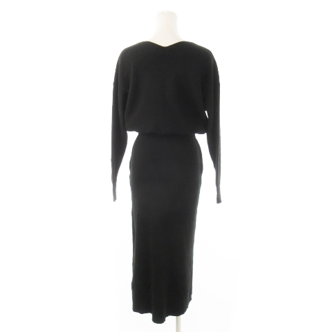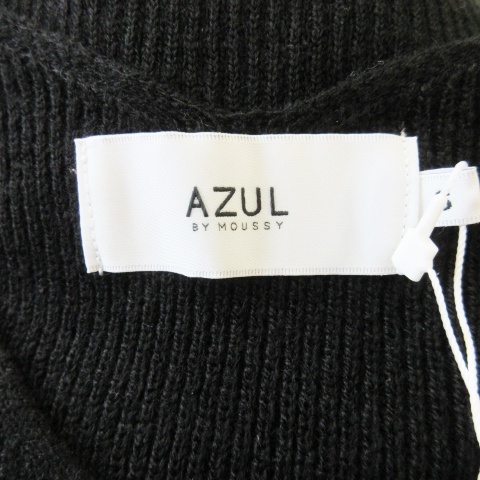未使用品 アズールバイマウジー AZUL by moussy ニットワンピース ロング Vネック 長袖 ブラウジング リブ S 黒 ブラック