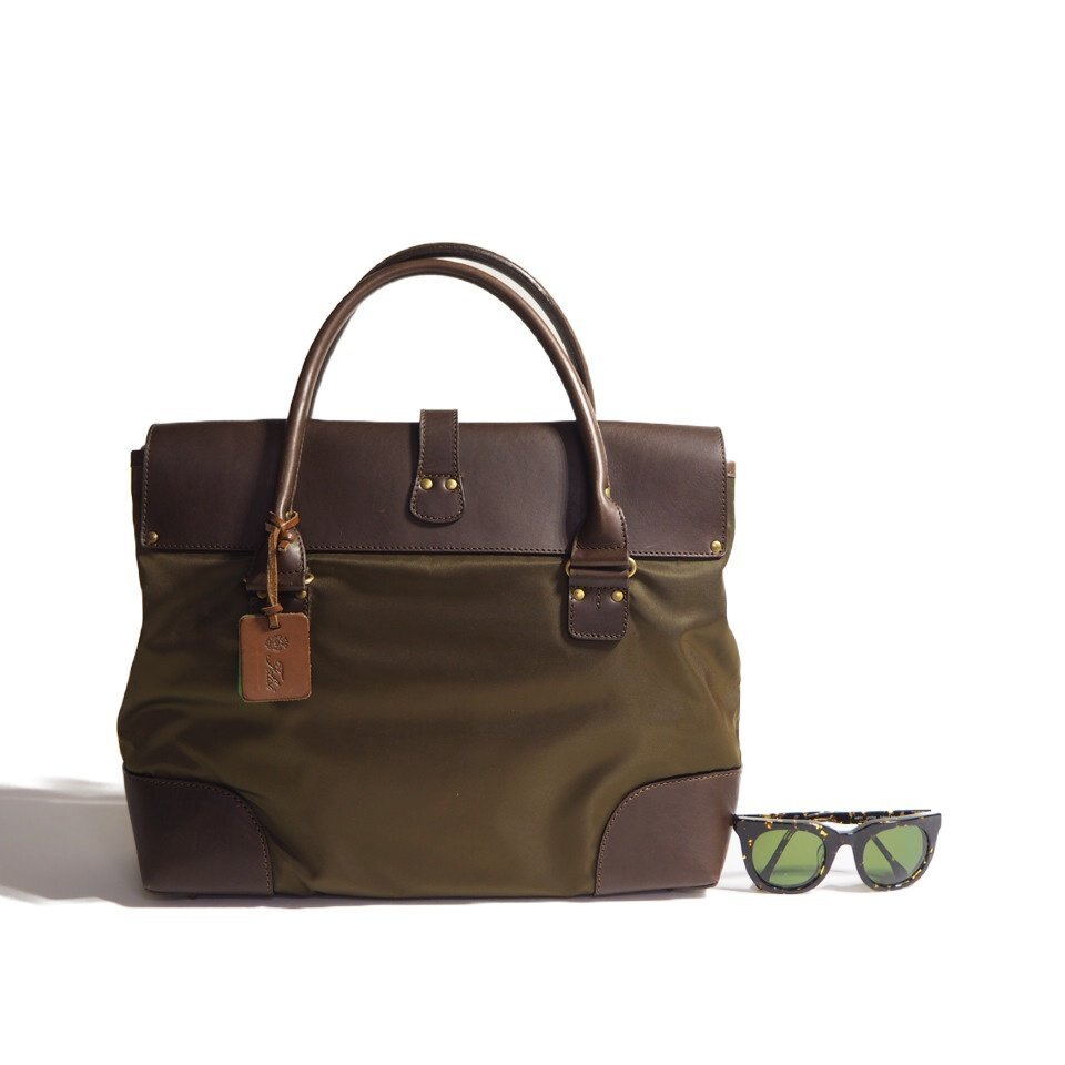 16-2 ナイロン×レザー ブリーフケース カーキ ブラウン