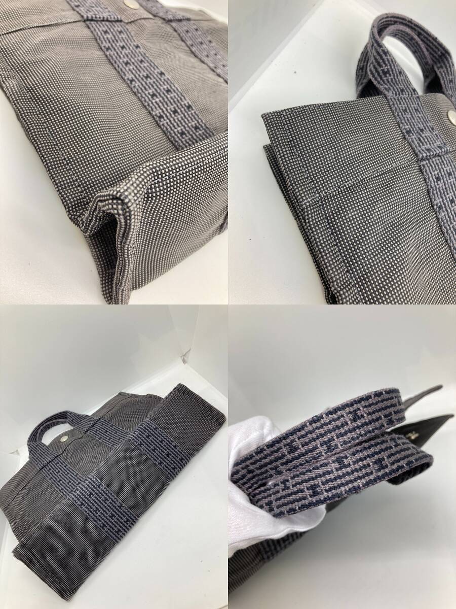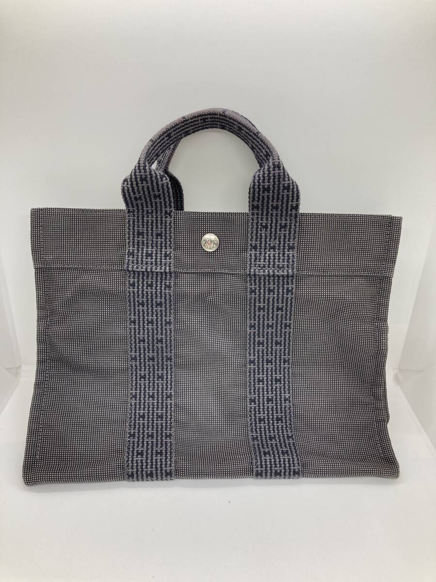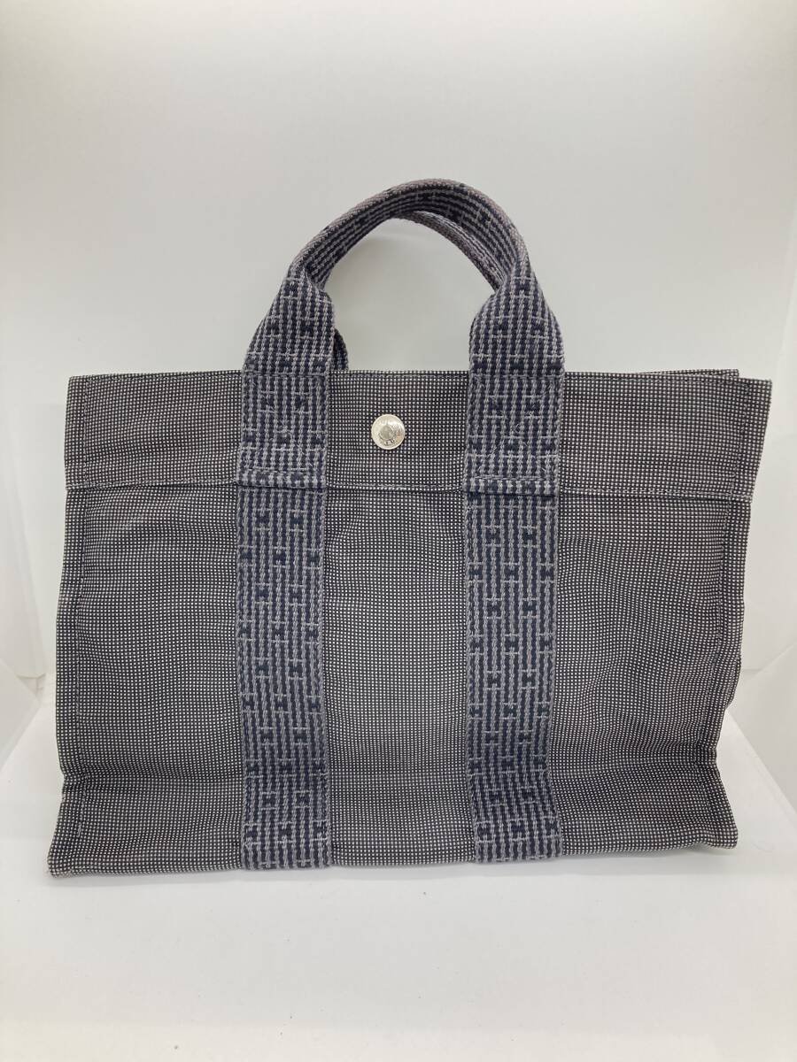 中古 HERMES エールライン PM トートバッグ キャンバス グレー ハンドバッグ ウィメンズ メンズ エルメス 26518